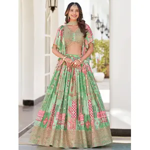 Womens Green Chinnon Dori Embroidery...