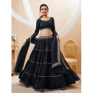Womens Black Georgette Lehariya...