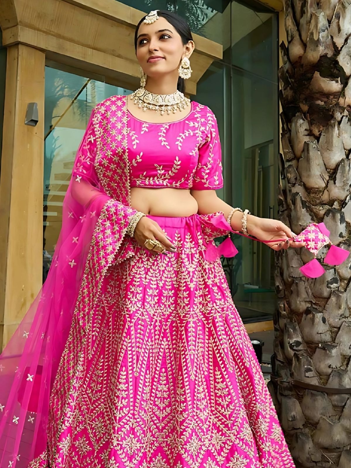 LEHNGA(BOTTOM)FABRIC:- MALAI SATIN SILKINNER:- MICRO FABRICWORK:- CHAPAT JARI AND CODING DORI EMBROIDERY WORKSTITCH:- SEMI STITCHED WITH CANCAN AND CANVASSIZE:- 42HEIGHT AND 42WAISTFLAIR:- 3.3 METER FLAIR CHOLI(TOP)FABRIC:- MALAI SATIN SILKSIZE:- 0.80 METER FABRICWORK:- CHAPAT JARI AND CODING DORI EMBROIDERY WORK STITCH:- UN STITCHED FABRICINNER:- MICRO FABRICDUPATTAFABRIC:- NETWORK:- CHAPAT JARI AND CODING DORI EMBROIDERY WORK SIZE:- 2.25 METER DUPATTASTITCH:- FULL STITCHEDADDITIONALWASH CARE: - DRY CLEAN ONLYCOLOR: - PRODUCT COLOR MAY SLIGHTLY VARY DUE TO PHOTOGRAPHIC LIGHTNING SOURCES OR YOUR DEVICE DISPLAY SETTINGSTHESE ARE MADE TO ORDER DESIGNER STYLES, HENCE EXPECT A SLIGHT VARIATION FROM THE IMAGE DISPLAYEDIN THE BOX 1 PIECE LEHENGA 1 PIECE DUPATTA 1 PIECE BLOUSE FABRIC (1 SET OF HAND MADE TASSELS)ALTERNATIVEHANDMADE TASSELS MAY DIFFER FROM THE PHOTOS AND VIDEOS. TASSELS WILL BE AVAILABLE AS LONG AS THE CURRENT STOCK LASTS. ALTERNATIVELY, NEW STOCK MAY TAKE SOME TIME TO ARRIVE. WE ARE NOT STRICTLY BOUND TO PROVIDE TASSELS.