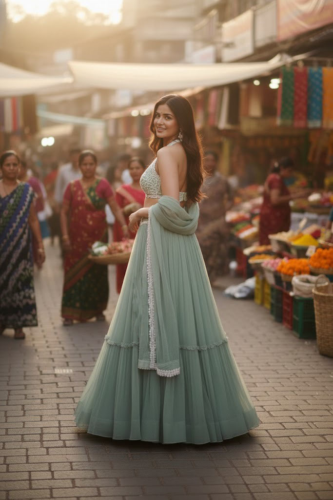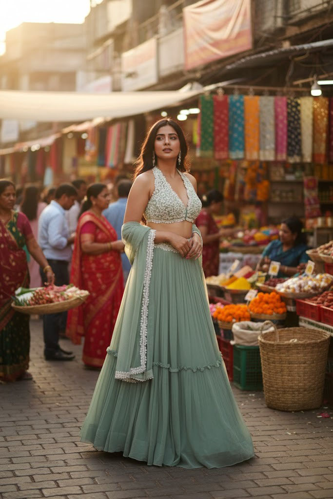 LEHNGA(BOTTOM)FABRIC:- GEORGETTEINNER:- MICRO FABRIC WITH CANVAS(NON WOVEN)WORK:- TWO-TIER CRUSH STITCH:- SEMI STITCHEDSIZE:- 42HEIGHT AND 42WAISTFLAIR:- 5.80 TO 6.00 METER FLAIR COLOR:- SEA GREENCHOLI(TOP)FABRIC:- GEORGETTESIZE:- 0.80 METER WORK:- 3MM AND DORI EMBROIDERY WORK STITCH:- UN STITCHED COLOR:- SEA GREENINNER:- MICRODUPATTAFABRIC:- GEORGETTE WORK:- PLAIN SIZE:- 2.25 METER DUPATTASTITCH:- FULL STITCHEDCOLOR:- SEA GREENADDITIONALWASH CARE: - DRY CLEAN ONLYCOLOR: - PRODUCT COLOR MAY SLIGHTLY VARY DUE TO PHOTOGRAPHIC LIGHTNING SOURCES OR YOUR DEVICE DISPLAY SETTINGSTHESE ARE MADE TO ORDER DESIGNER STYLES, HENCE EXPECT A SLIGHT VARIATION FROM THE IMAGE DISPLAYEDIN THE BOX 1 PIECE LEHENGA 1 PIECE DUPATTA 1 PIECE BLOUSE FABRIC.