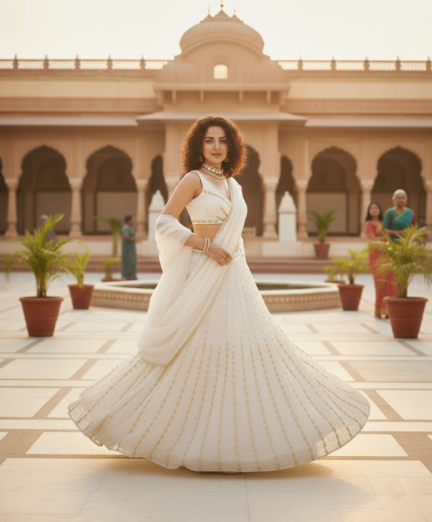 LEHENGA(BOTTOM)FABRIC:- GEORGETTEINNER:- MICRO FABRICWORK:- 3MM SEQUINS AND JARI EMBROIDERY WORKSTITCH:- SEMI STITCHED WITH CANCAN AND CANVASSIZE:- 42 HEIGHT AND 42 WAIST FLAIR:- 4.25 METER TO 4.40 METERCHOLI(TOP):-FABRIC:- GEORGETTESIZE:- 0.80 METER FABRICWORK:- 3MM SEQUINS AND JARI EMBROIDERY WORK STITCH:- UN STITCHED FABRICINNER:- MICRO FABRICDUPATTA:-FABRIC:- GEORGETTEWORK:- 3MM SEQUINS AND JARI EMBROIDERY BORDER WORK SIZE:- 2.25 METER DUPATTASTITCH:- FULL STITCHEDADDITIONALWASH CARE: - DRY CLEAN ONLYCOLOR: - PRODUCT COLOR MAY SLIGHTLY VARY DUE TO PHOTOGRAPHIC LIGHTNING SOURCES OR YOUR DEVICE DISPLAY SETTINGSTHESE ARE MADE TO ORDER DESIGNER STYLES, HENCE EXPECT A SLIGHT VARIATION FROM THE IMAGE DISPLAYEDIN THE BOX 1 PIECE LEHENGA 1 PIECE DUPATTA 1 PIECE BLOUSE FABRIC (1 SET OF HAND MADE TASSELS)ALTERNATIVEHANDMADE TASSELS MAY DIFFER FROM THE PHOTOS AND VIDEOS. TASSELS WILL BE AVAILABLE AS LONG AS THE CURRENT STOCK LASTS. ALTERNATIVELY, NEW STOCK MAY TAKE SOME TIME TO ARRIVE. WE ARE NOT STRICTLY BOUND TO PROVIDE TASSELS.