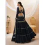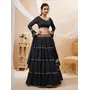 Womens Black Georgette Lehariya Lehenga Set