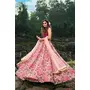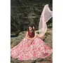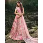 Womens Peach Net Thread Embroidery Lehenga Set