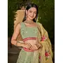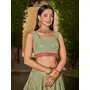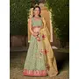 Womens Pista Green Georgette Thread Embroidery Lehenga Set
