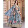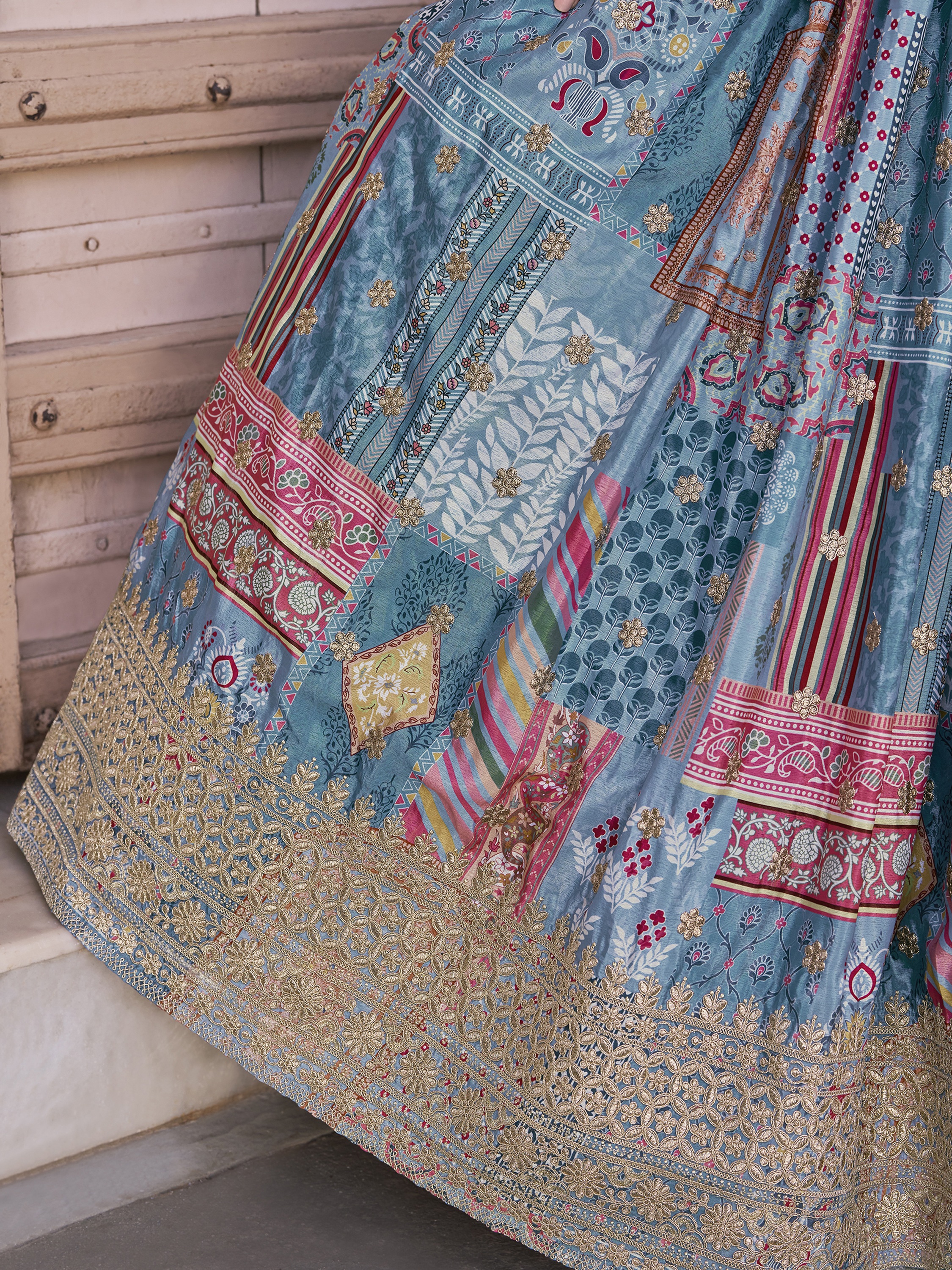 Elevate your ethnic look with this sky blue chinnon lehenga featuring dori embroidery work. Designed for festive occasions and celebrations, it offers a graceful flow and timeless appeal.Crafted from lightweight chinnon fabric with a semi-stitched finish, this lehenga ensures comfort and easy customization. Dry clean recommended.