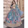 Womens Sky Blue Chinnon Dori Embroidery Lehenga Set