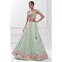 Elevate your ethnic look with this sky blue faux georgette lehenga featuring thread embroidery work. Designed for festive occasions and celebrations, it offers a graceful flow and timeless appeal.Crafted from lightweight faux georgette fabric with a semi-stitched finish, this lehenga ensures comfort and easy customization. Dry clean recommended.