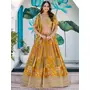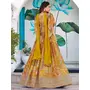 Womens Yellow Chinnon Dori Embroidery Lehenga Set