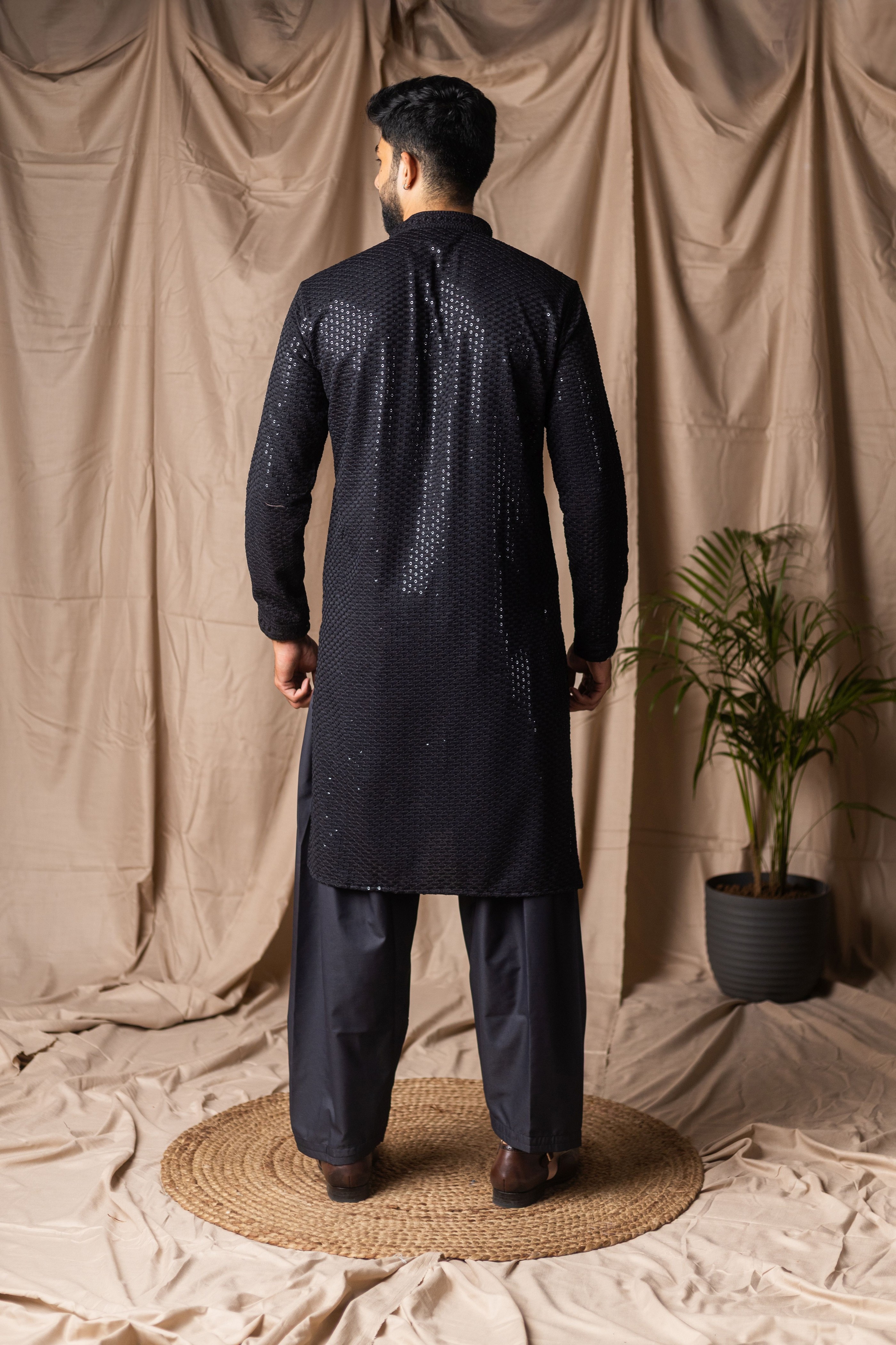 Black Color Beautiful Thread Embroidery Work Rayon Fabric Ceremonial Men's Kurta Payjama