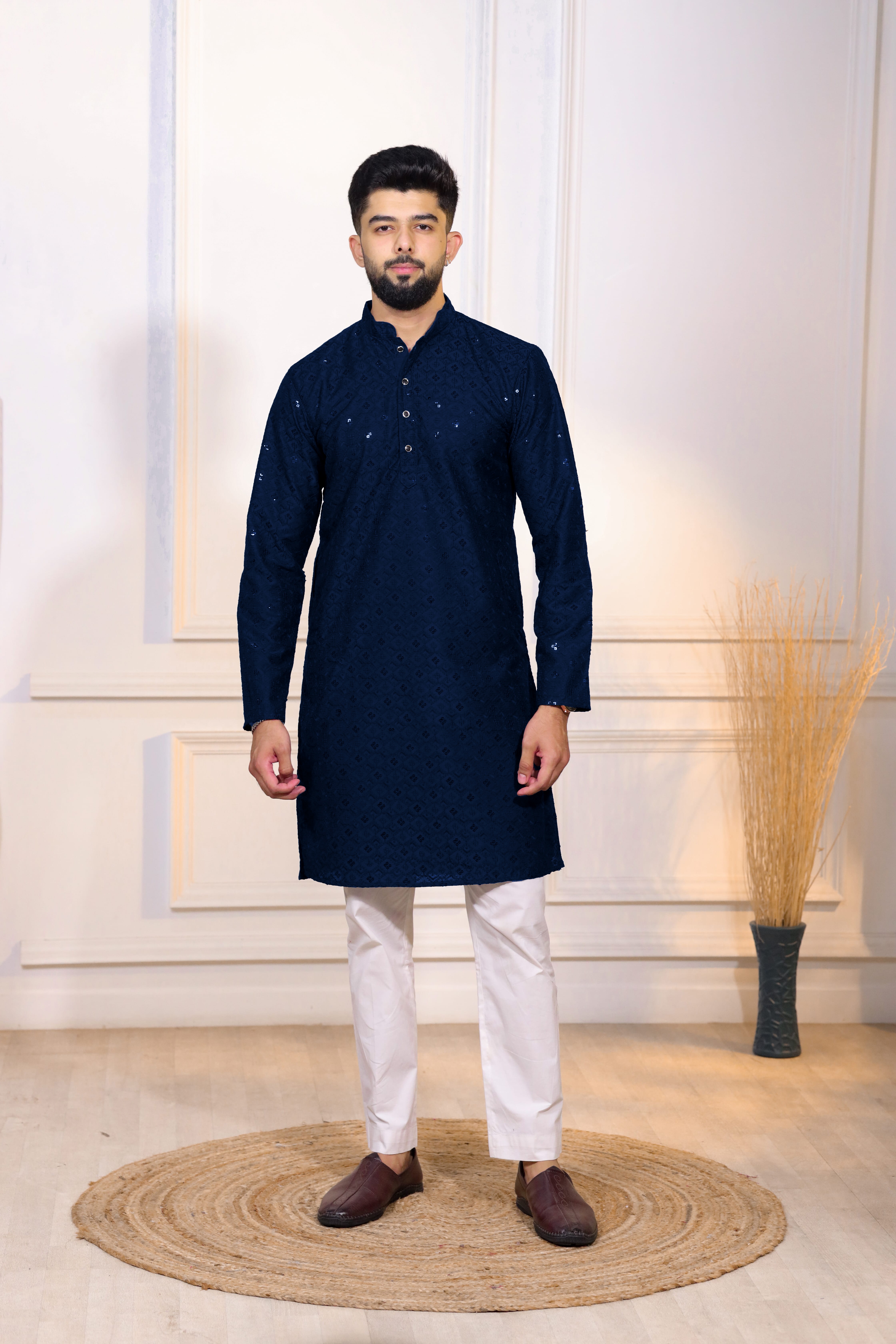 Blue Color Designer Embroidery Work Ceremonial Ethnic Kurta Payjama For Men's