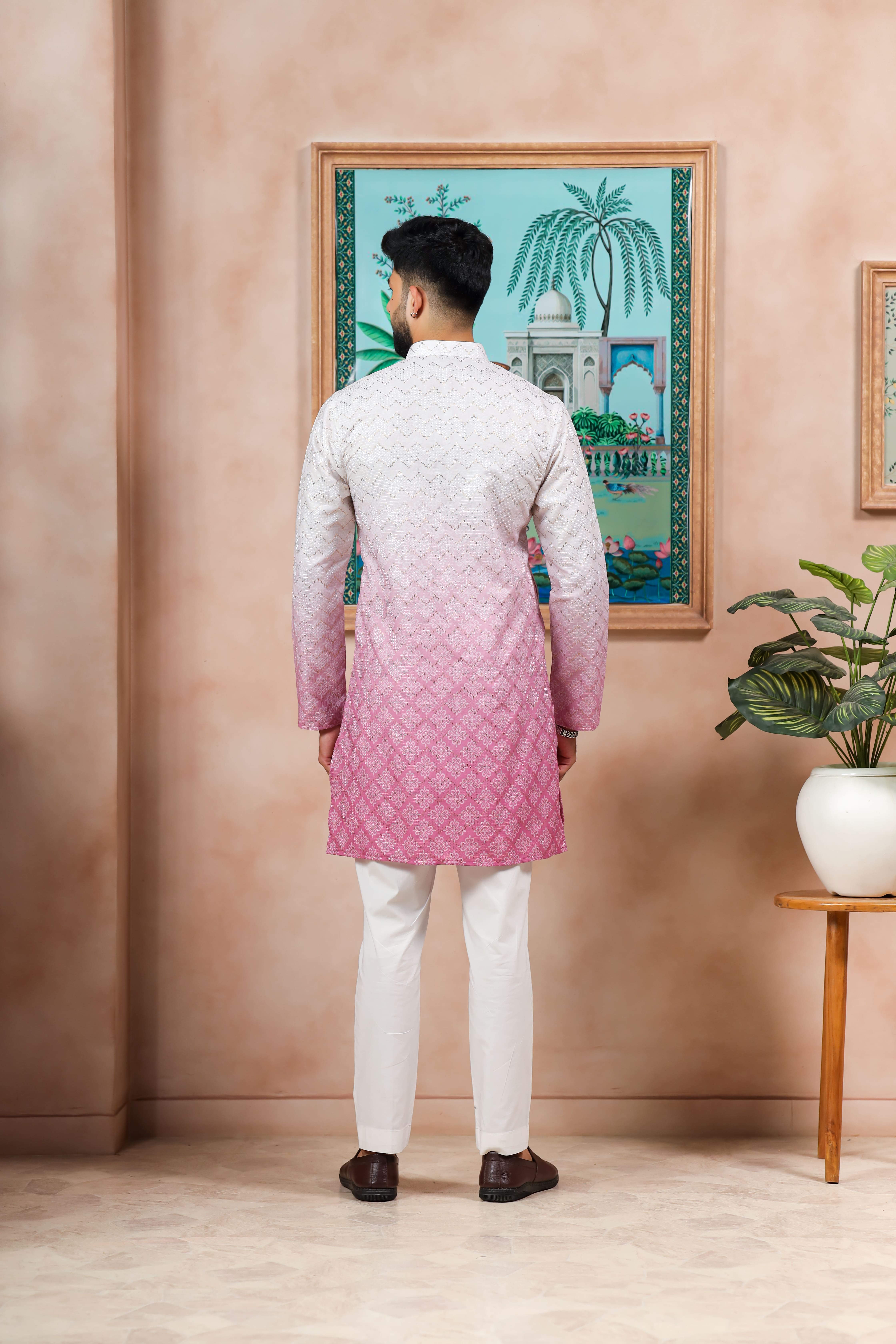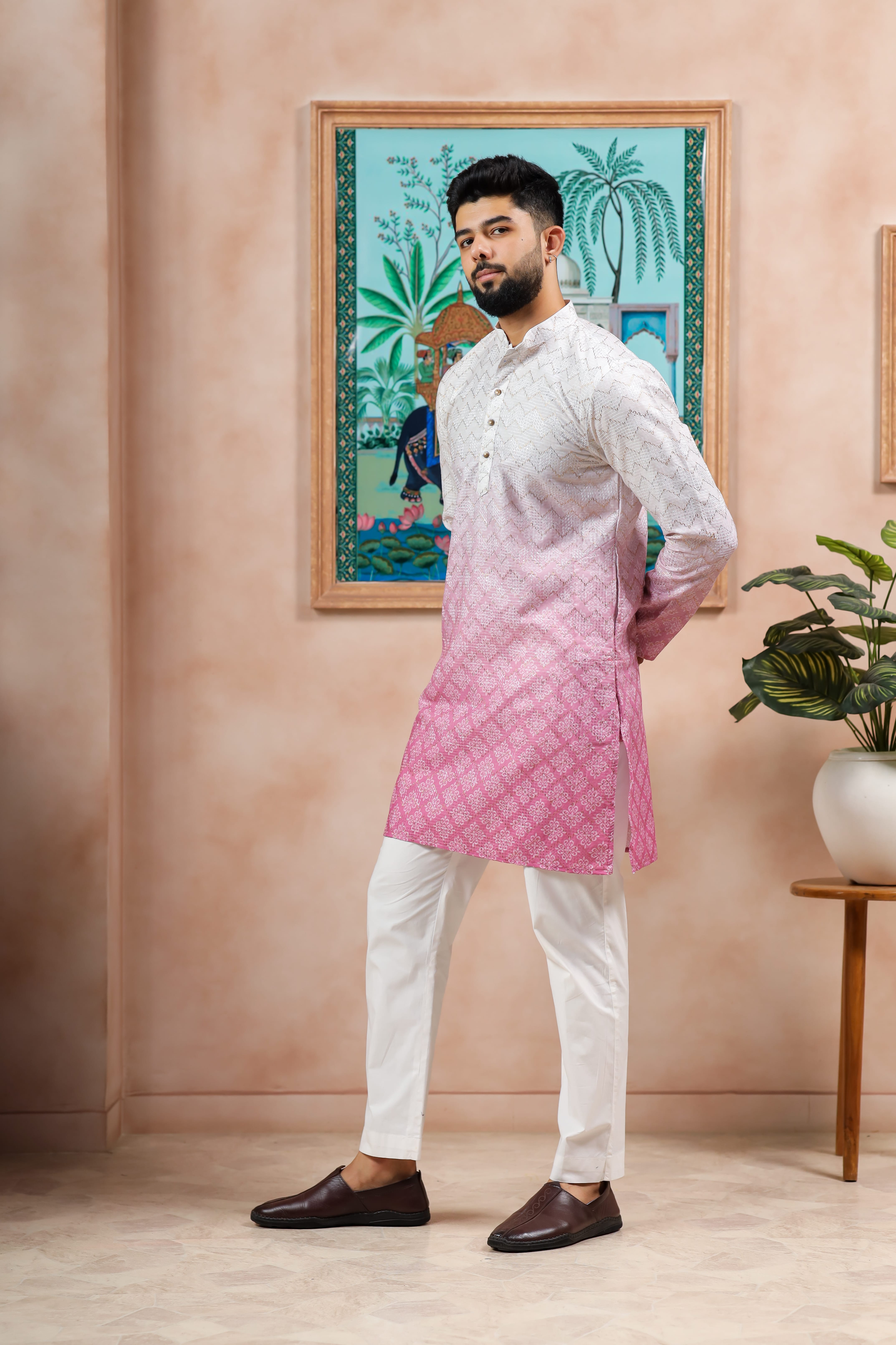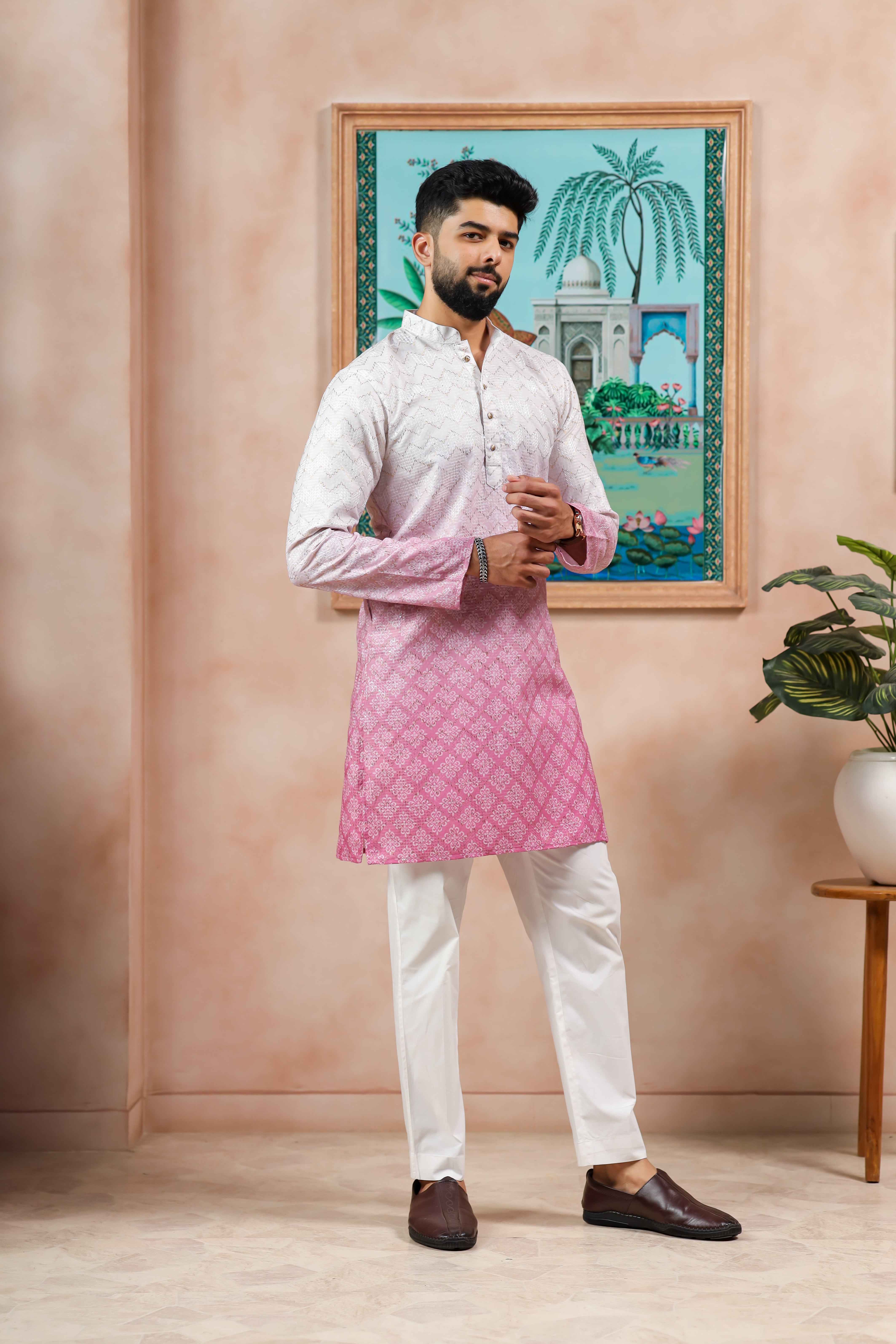 Cream-Pink Color Beautiful Festive Special Kurta Payjama For Men's