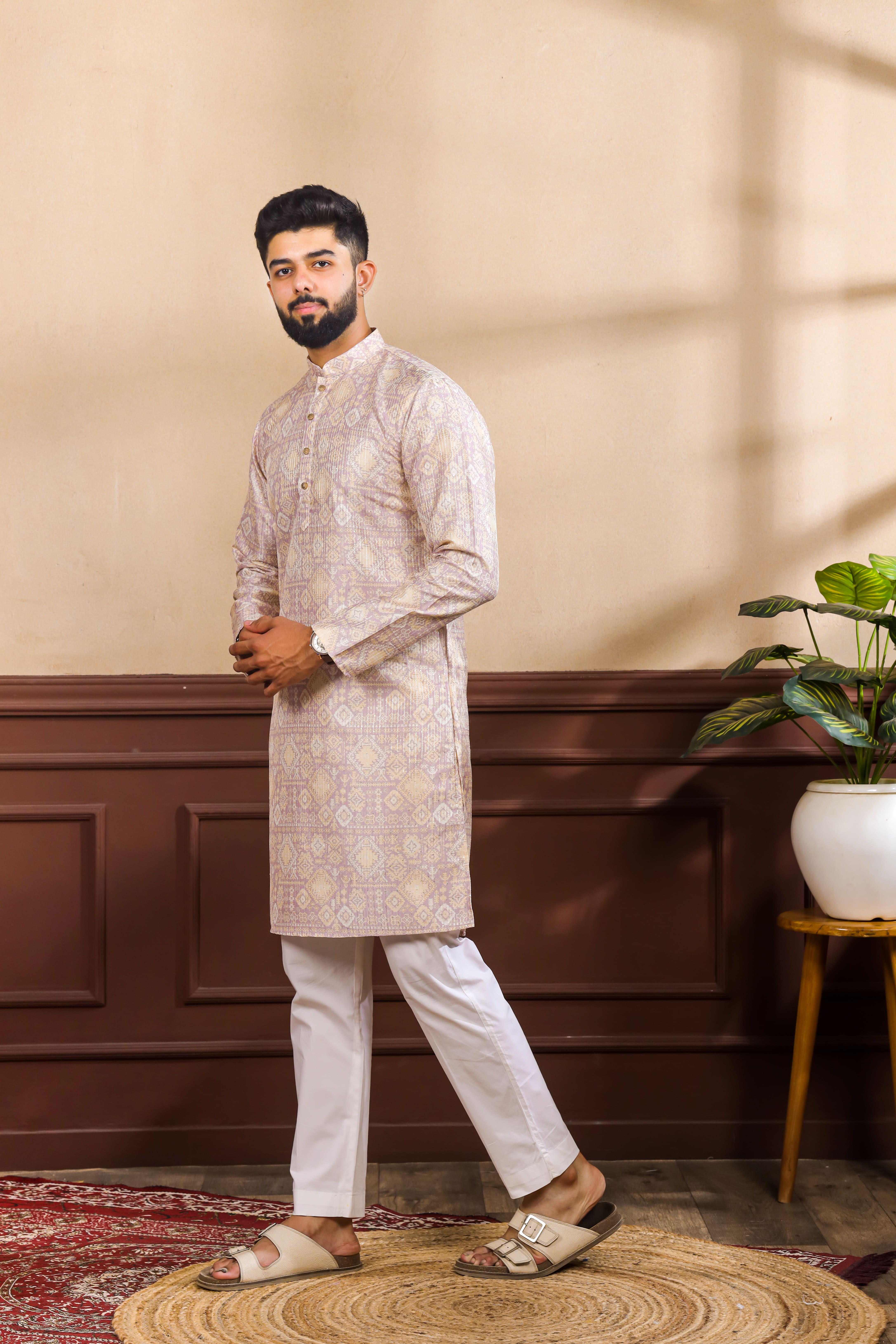 Lavender Color Beautiful Art Silk Fabric Smart Print Designer Kurta Payjama