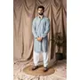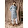 Light Blue Color Beautiful Thread Embroidery Work Rayon Fabric Ceremonial Men's Kurta Payjama