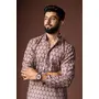 Mauve Color Blended Linen Designer Printed Stylish Kurta Payjama For Mens'