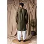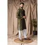 Mehandi Green Color Beautiful Thread Embroidery Work Rayon Fabric Ceremonial Men's Kurta Payjama