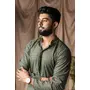 Mehandi Green Color Blended Linen Designer Printed Stylish Kurta Payjama For Mens'