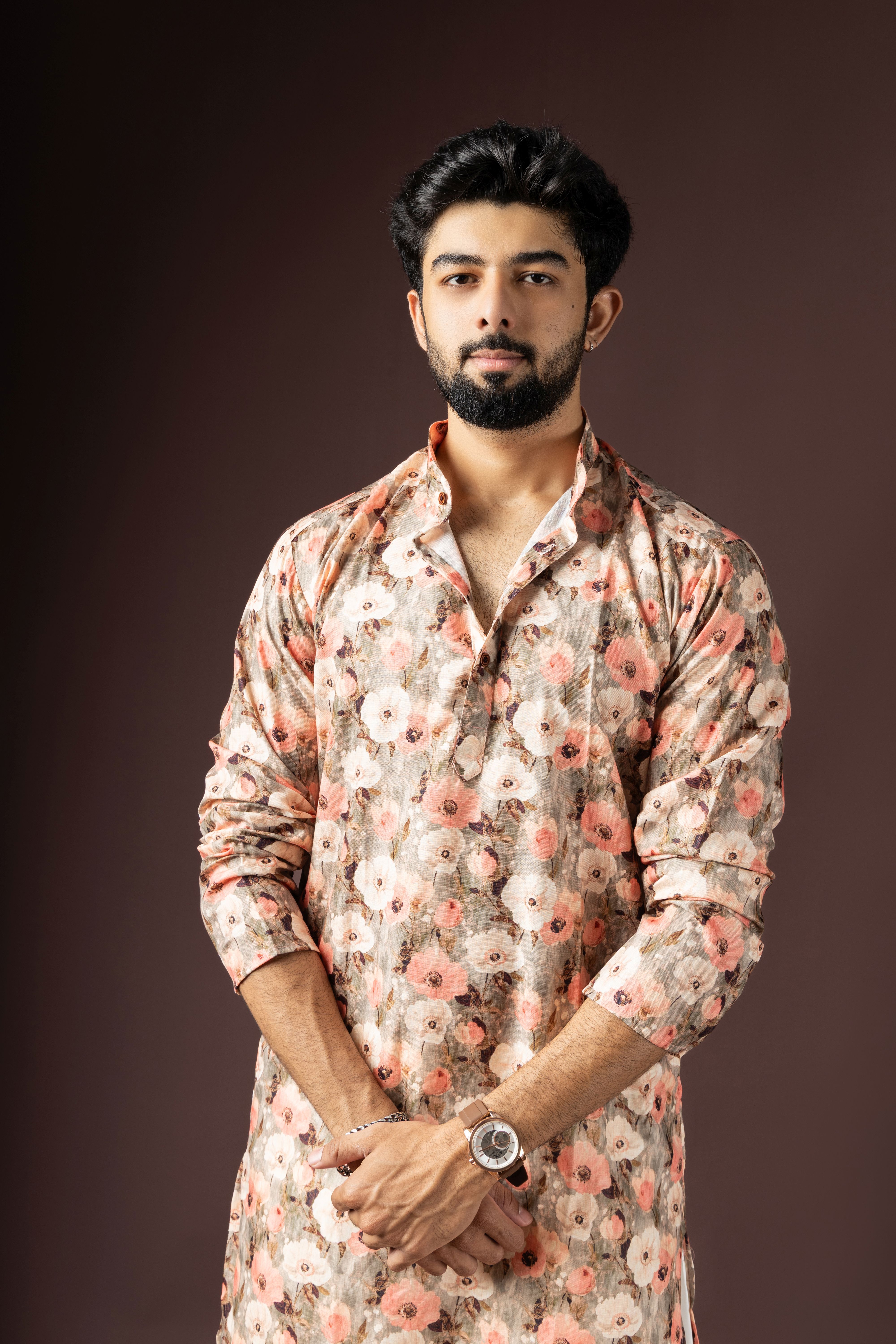 Multi Color Beautiful Printed Blended Cotton Fabric Ceremonial Men's Kurta Payjama