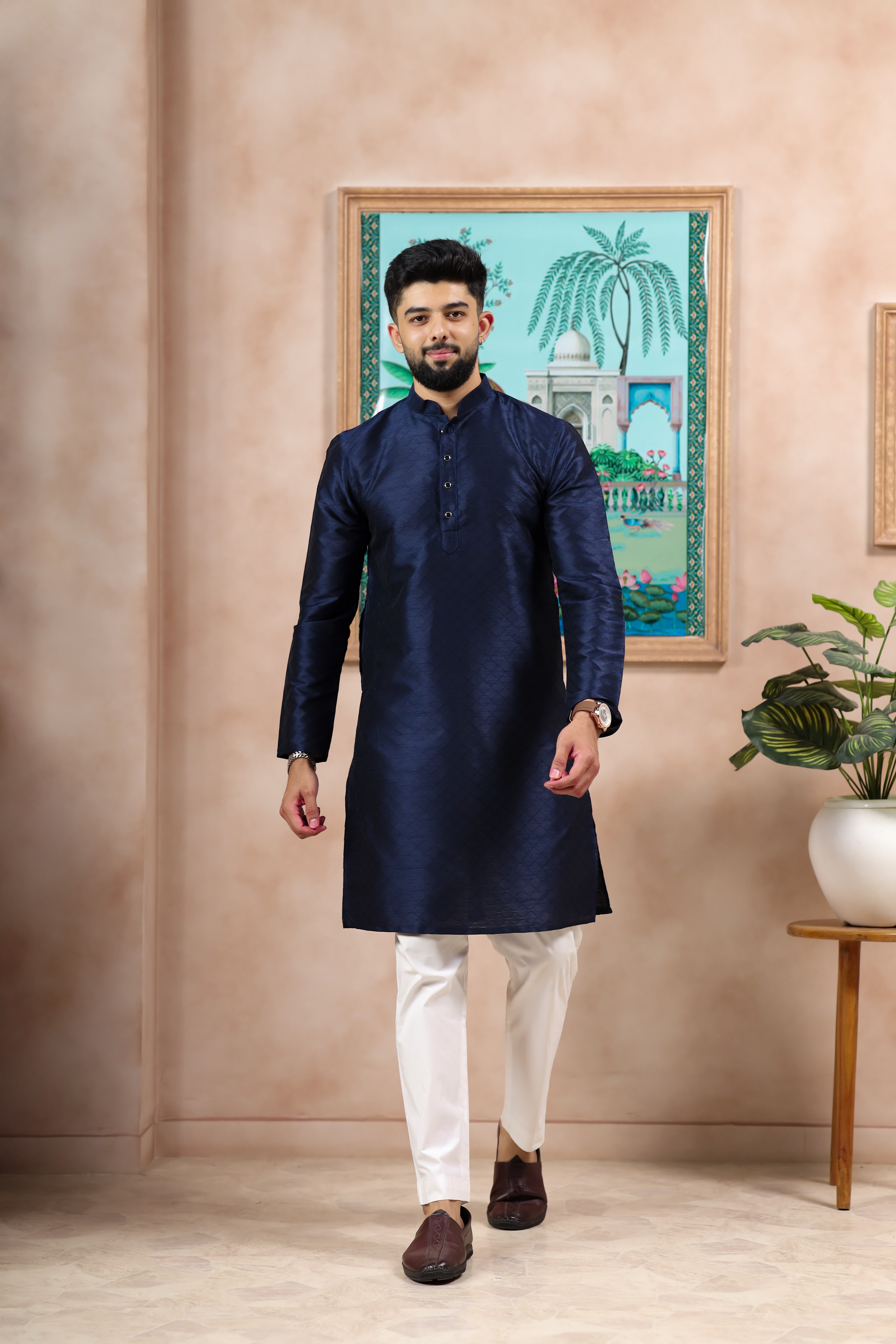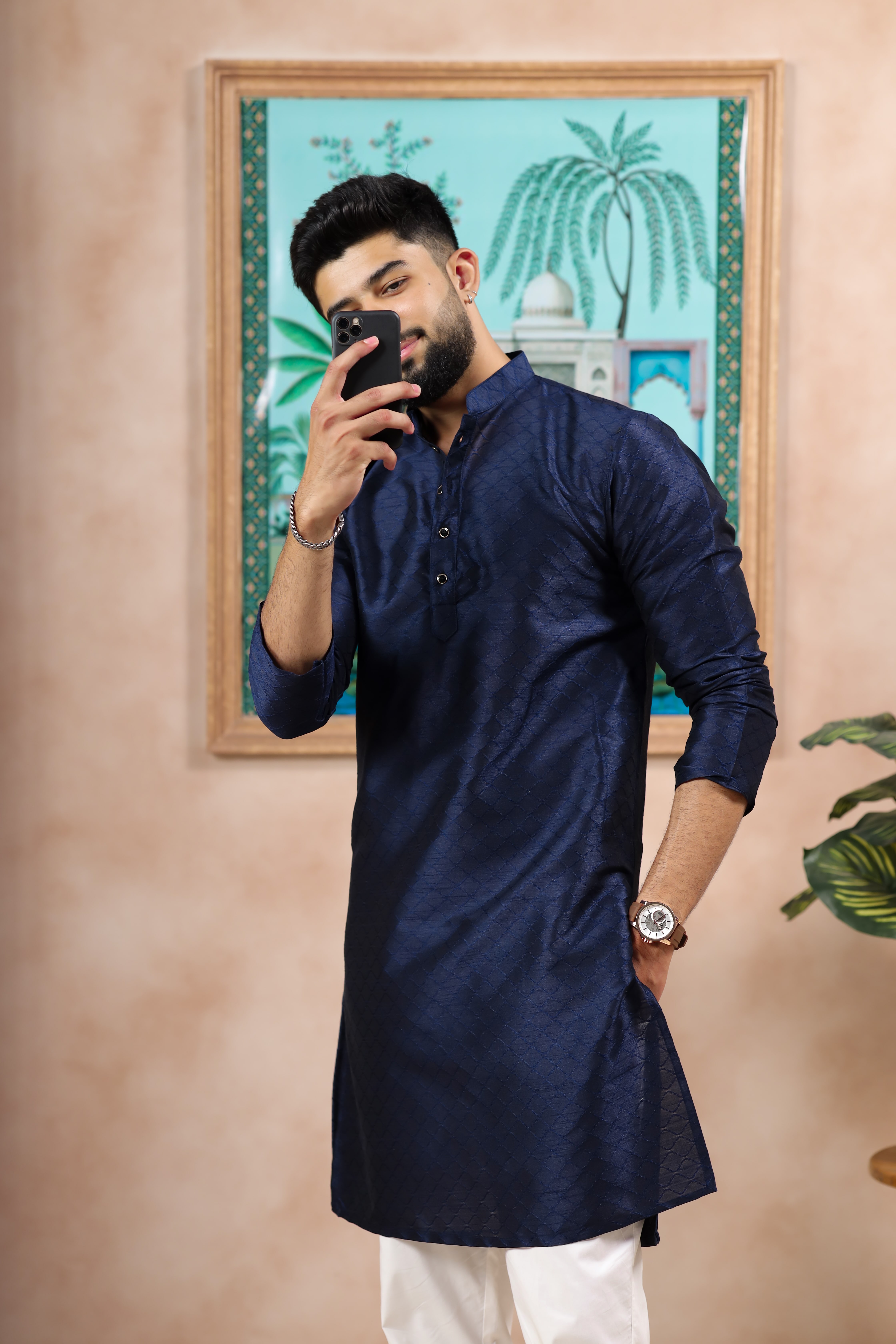 Navy Blue Color Graceful Partywear Kurta Payjama For Mens Ceremonial Looks