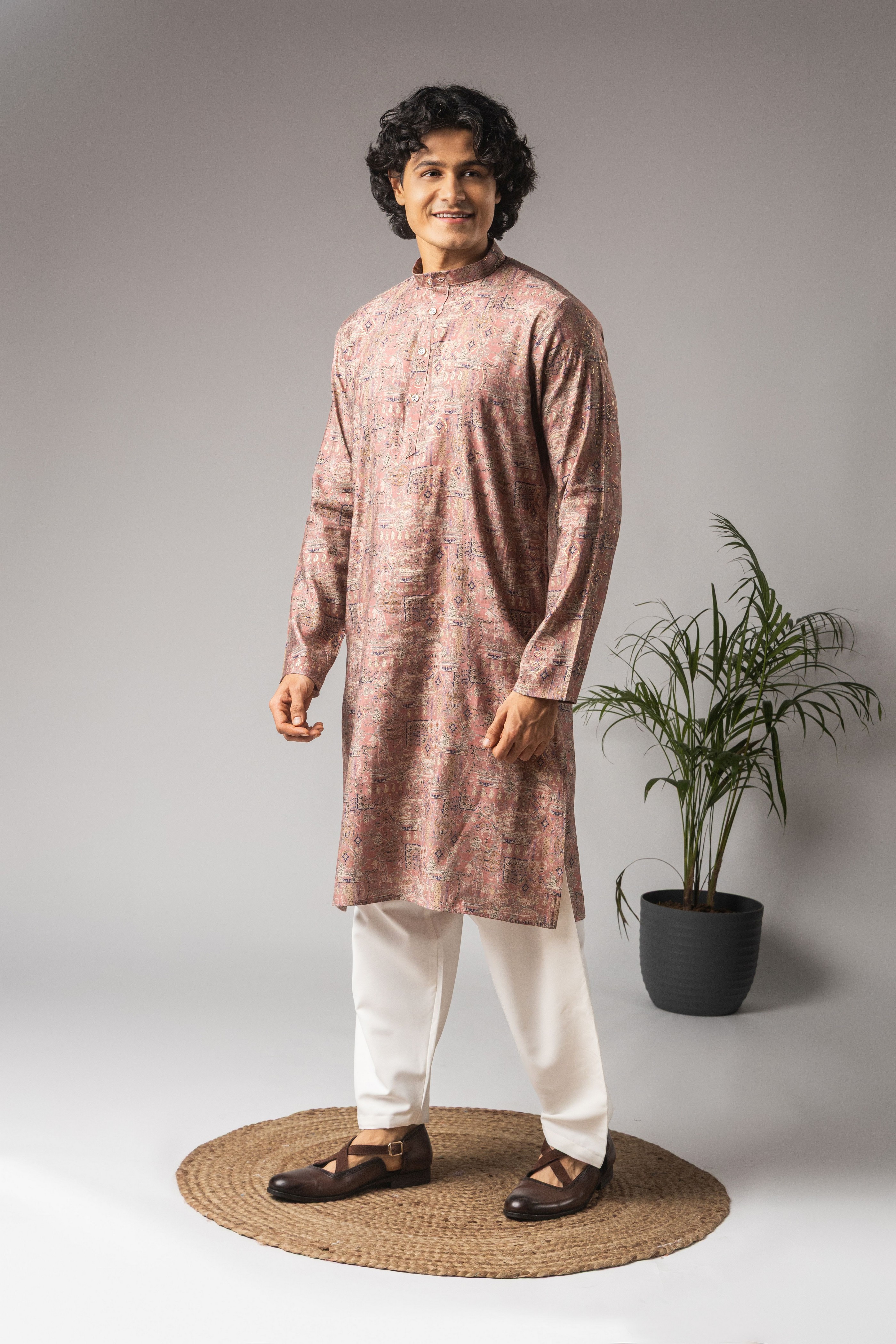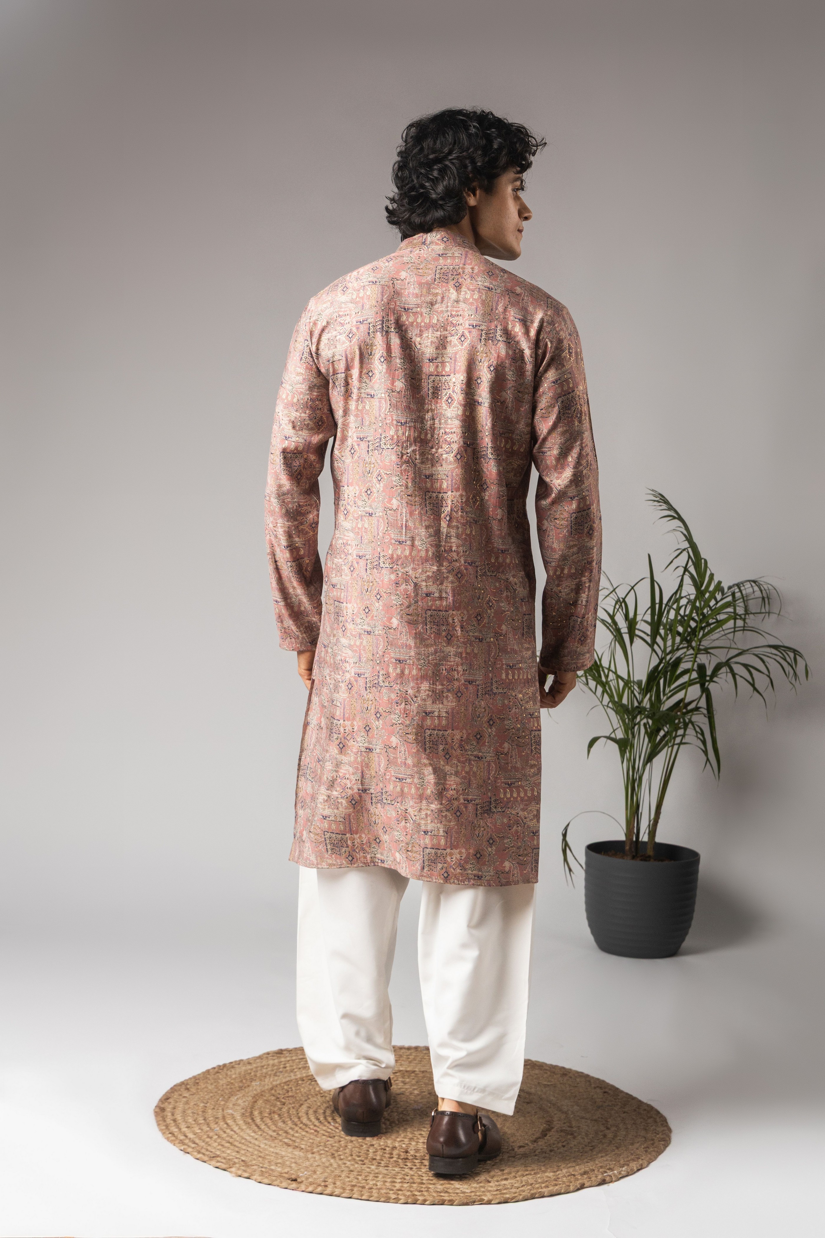 Pink Color Modal Silk Fabric Designer Ceremonial Kurta Payjama For Men's
