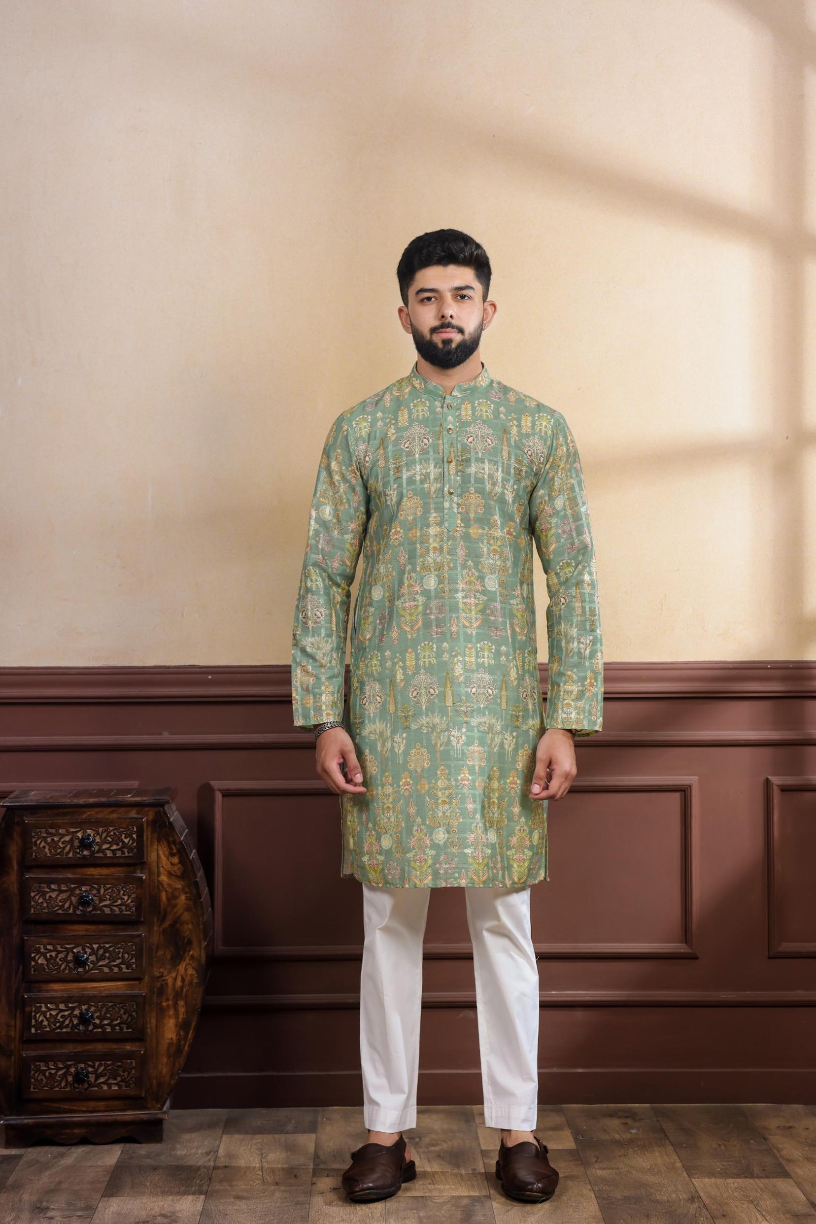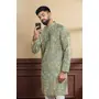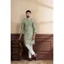 Pista Color Ethnic Woven Patta With Digital Printed Ceremonial Kurta Payjama For Men's