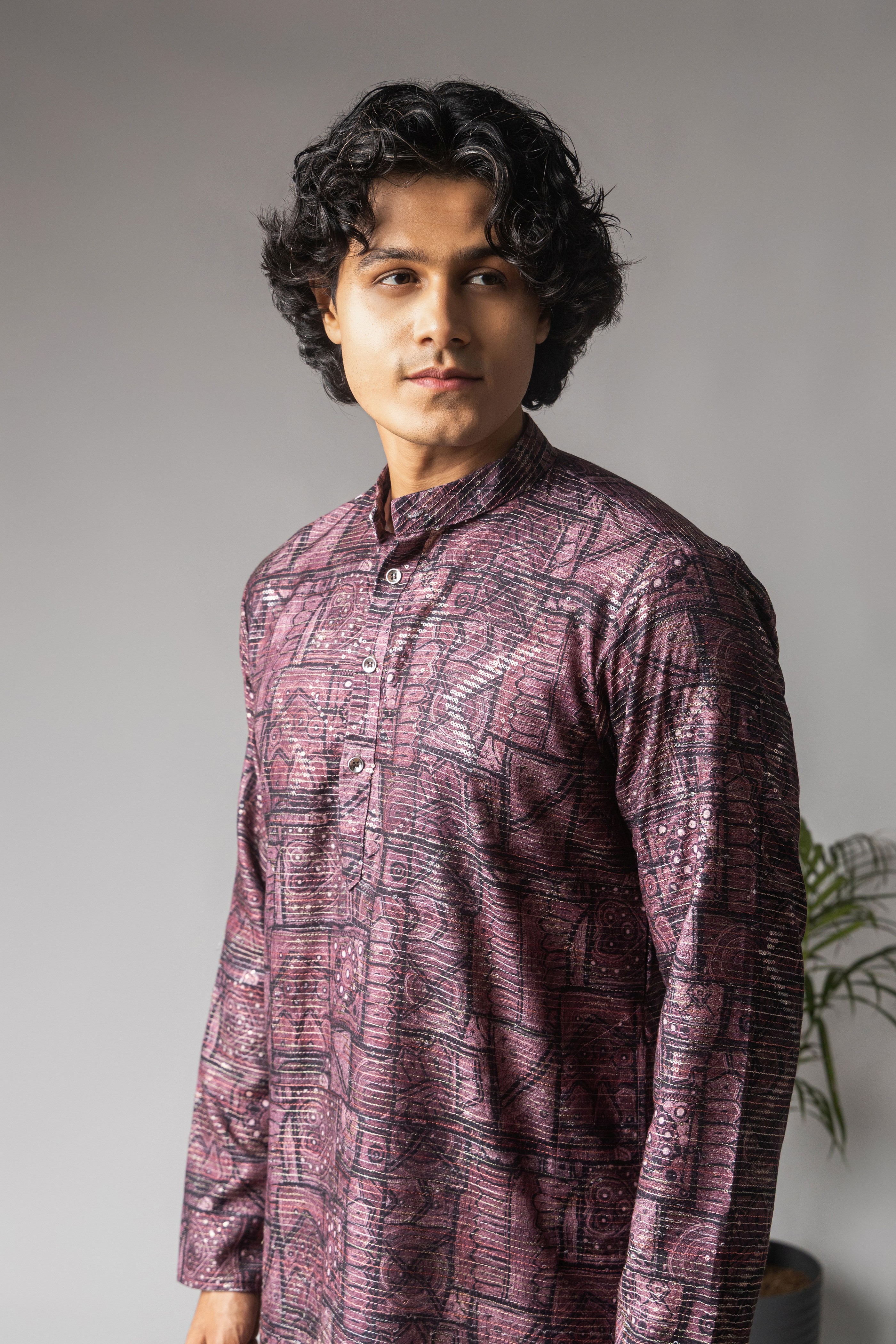 Purple Color Viscose Fabric Designer Ceremonial Kurta Payjama For Men's
