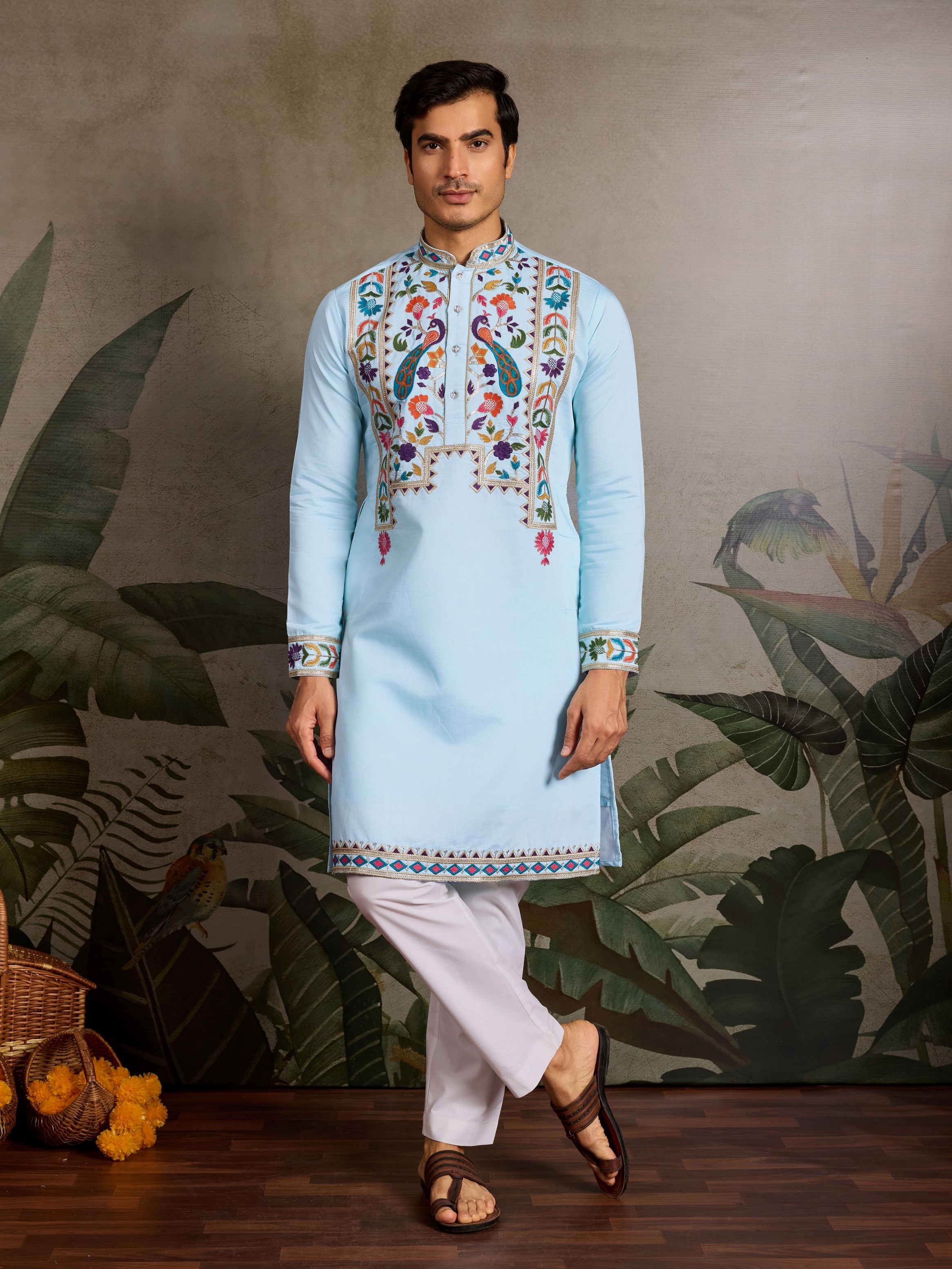 Sky Blue Color Beautiful Visccose Silk Festive Special Kurta For Men's
