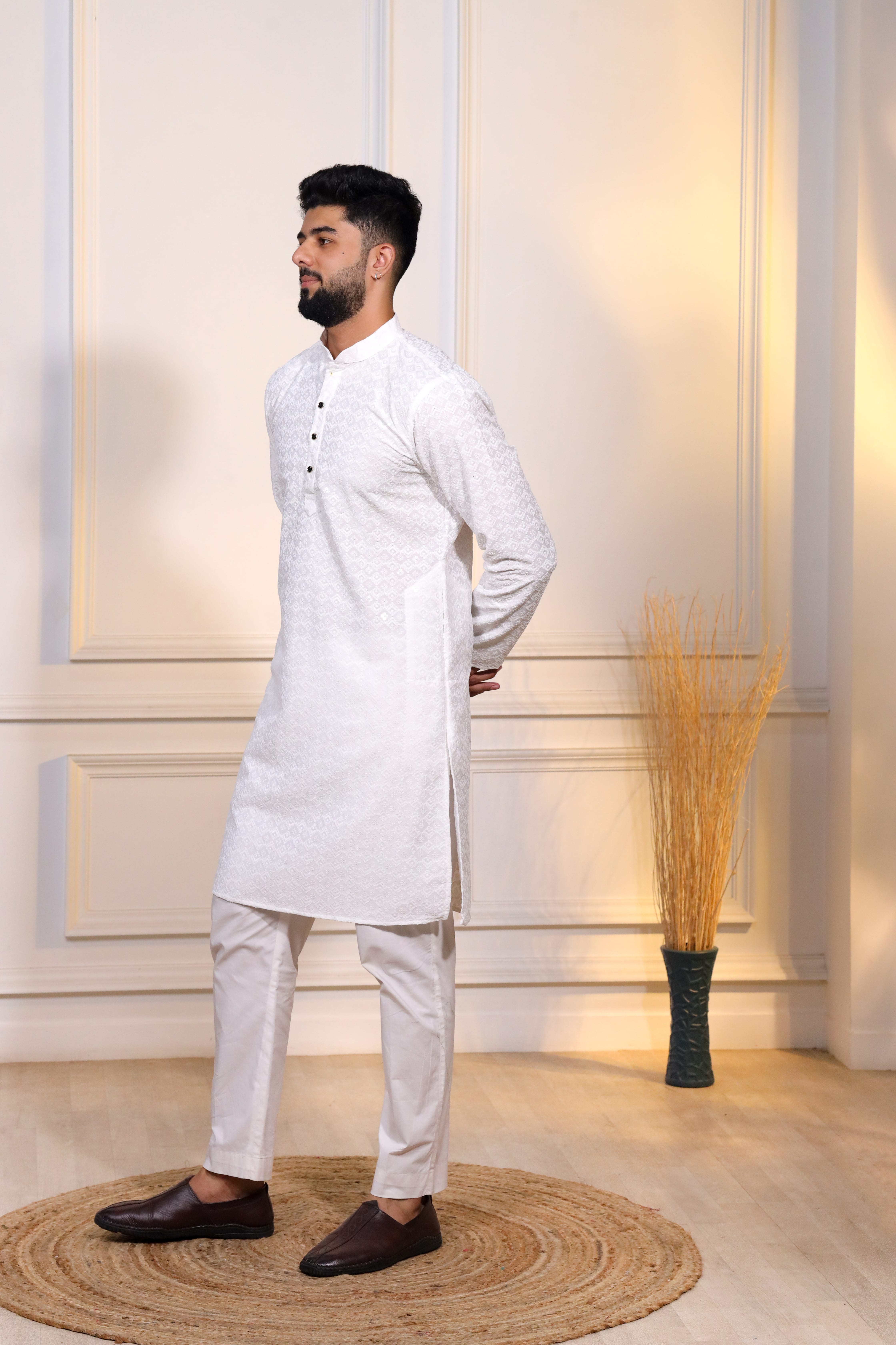 White Color Designer Embroidery Work Ceremonial Ethnic Kurta Payjama For Men's