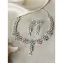 What You Get:- This jewellery set consists of a necklace and a pair of earrings. Rhodium-Plated Silver Toned Necklace has Flower shaped American Diamond studded detail secured with a S-Hook closure. A pair of matching Drop Earrings each secured with a Post and Back Closure. LUXURY GIFTING IDEA:- Give a meaningful and luxurious gift with Zeneme Jewellery. A favourite gift choice each Zeneme jewellery for women comes with a Signature gift box and makes excellent gift choice for birthdays wedding anniversaries Valentine's Day Mother's Day Diwali Christmas and all your special occasions. MATERIAL CRAFTSMANSHIP:- Finest quality stones and environmentally friendly nonprecious Metals are used for making the jewelry set. It is safe for wearing for long hours. Exquisite handwork is required since some crystals are too small to pick my fingers really hard and time-consuming. JEWELLERY CARE:- Keep the jewellery away from direct heat water perfumes deodorants and other strong chemicals as they may react with the metal or plating. Store the jewellry when not in use in a storage box or a cloth pouch to retain its shine. Nickel free and Lead free as per International Standards that makes it very skin friendly. The plating is non-allergic and safe for all environments.