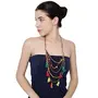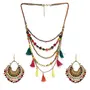 Stunning Boho multistring necklace with matching dangler chandbali hook earrings Beautiful Multi color thread tassels with multicolour and golden metallic beads necklace and Earrings having enamel work with multicolour beads in gold tone gives an amazing look. Falls beautiful. Easy to wear adjustable metallic lobster clasp for adjusting easily around the neck. These fancy earrings are ideal for daily wear. An amazing gifting option for friends and dear ones.
