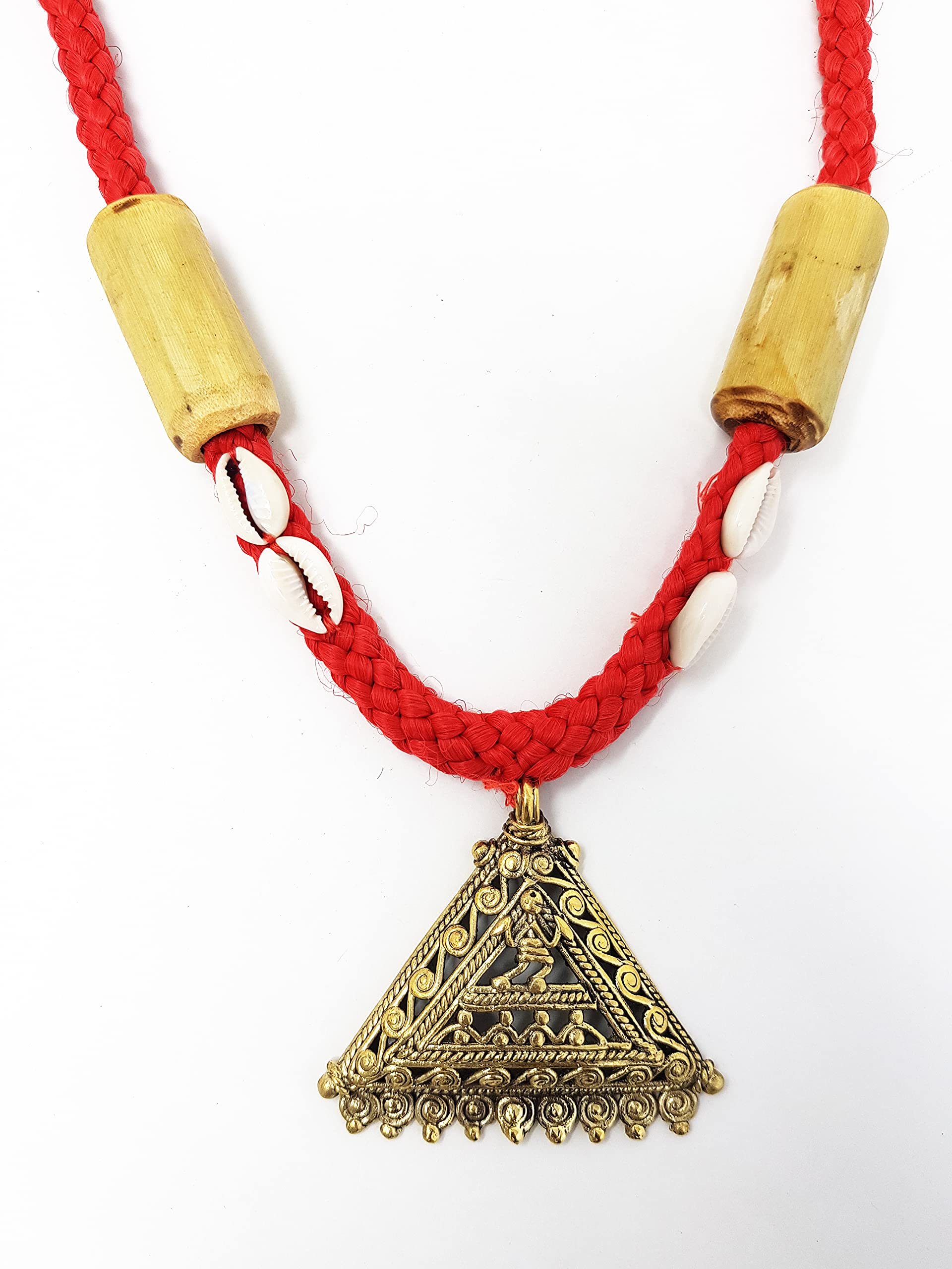 Handcrafted in Bastar Chhattisgarh with bell metal using traditional lost wax technique of Dhokra Craft our pendants with anachronistic tribal structures is suggesting its association to the rich cultural past of India. This piece captured through fine detailing of the figurine depicts the expert craftsmanship of the artisan. This Jewellery piece looks exquisite with Tribal Design and will be a great fashion symbol. Also this tribal art makes for an excellent gift to your near and dear ones.