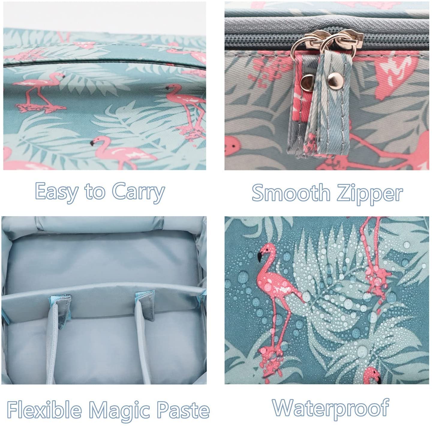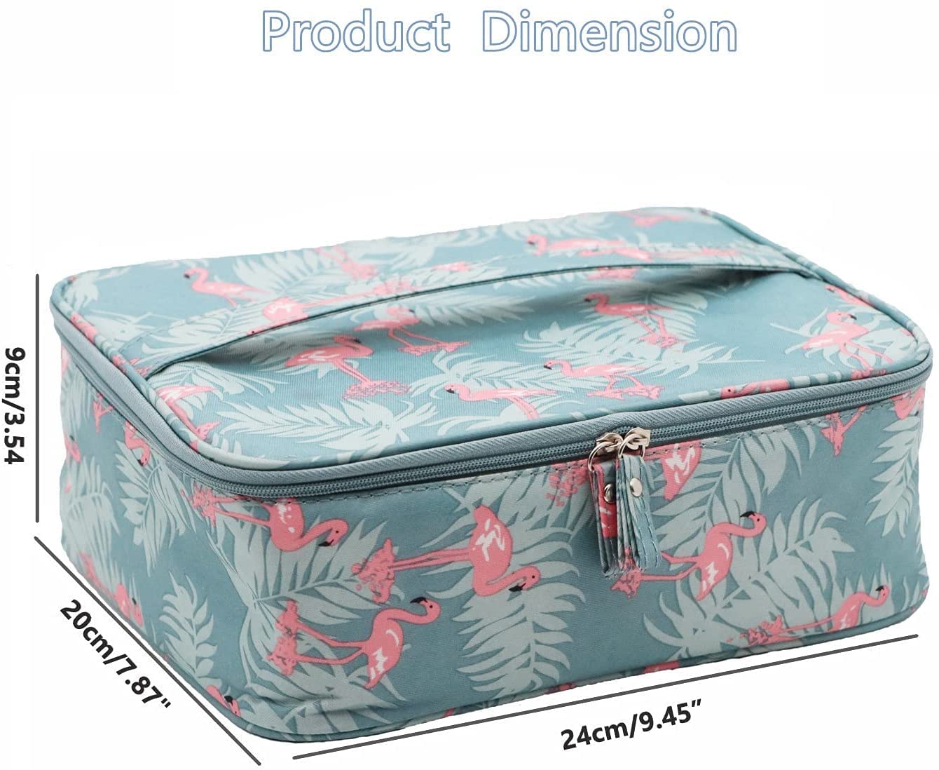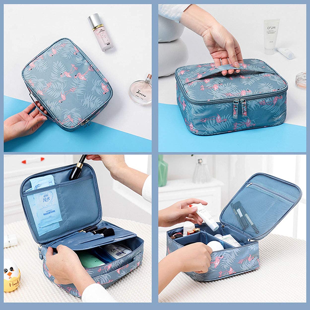 Favria Makeup Bags Large Cosmetic Bag Travel Makeup Bag Organiser Portable Toiletry Wash Bag for Women Girls -Grey Flamingo