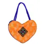 HEART Handle Purse - Mushru Silk Traditional Block Print with Kutchhi Hand Work Patch Fusion Handicraft (Orange)