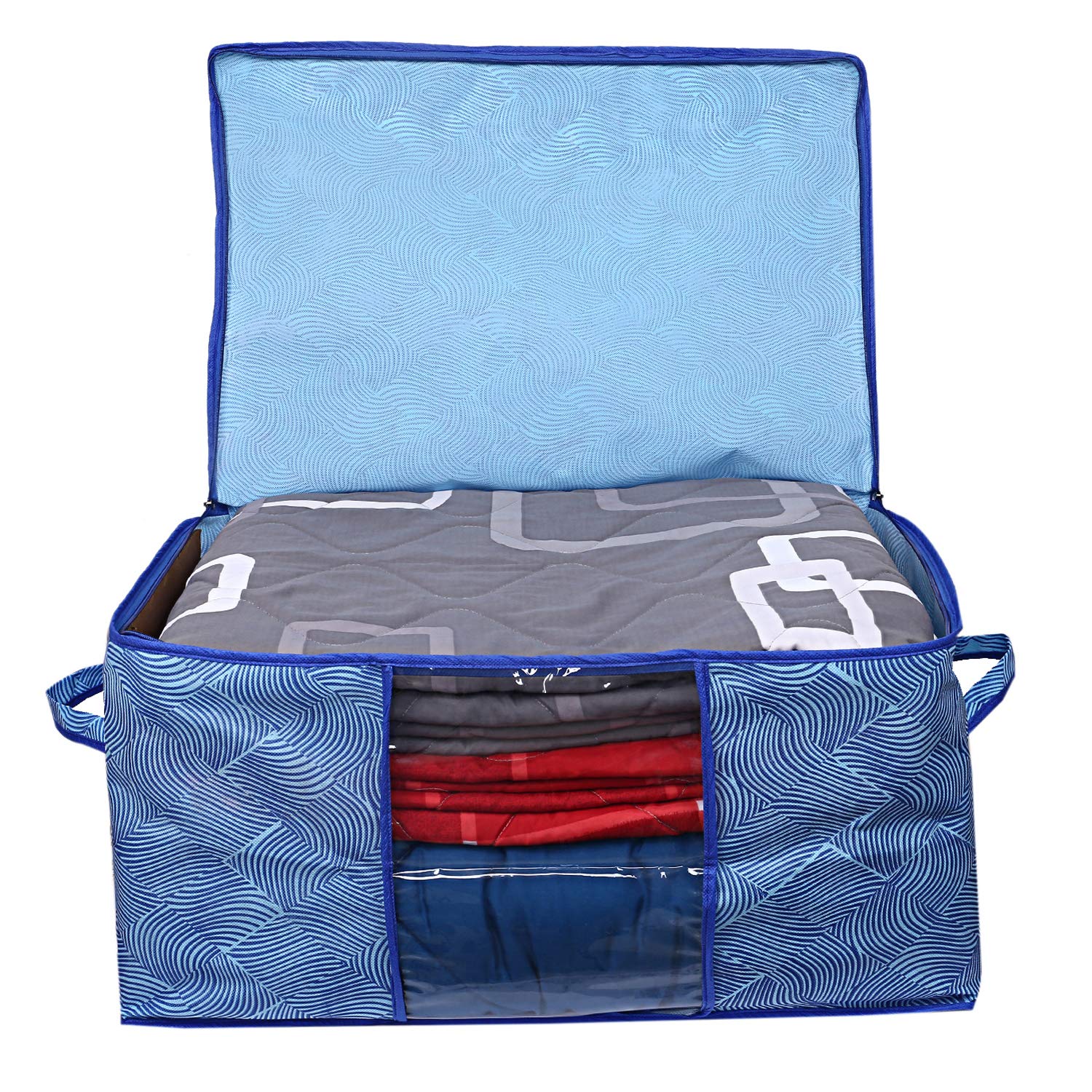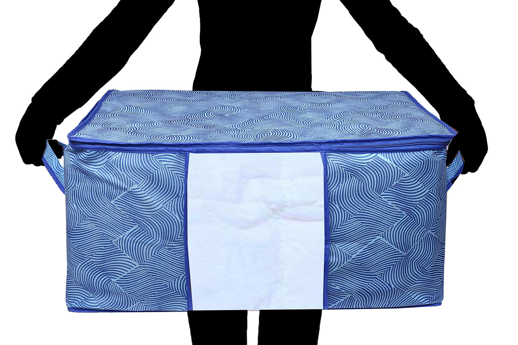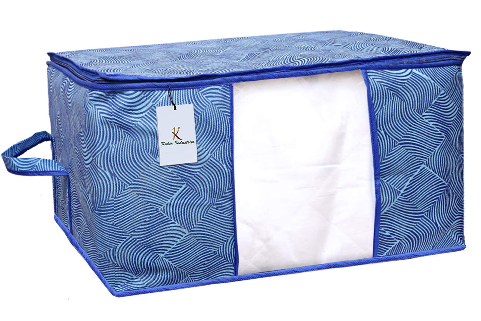 Folding durable and non woven fabric easy storage fabric sweater clothes blanket storage bag suitable for storing clothes blankets sweater quilts coats and other. Easy to organize all your stuff and take out your clothes from mildew dust moisture insects anti-discoloration as they are well stored. Material - non woven fabric colour - royal blue dimensions - 65 x 47 x 33 cm. Design- plain. Package contents: 3 underbed storage bag. Carefully stitched to offer additional strength. Transparent see-through window for easy identification of contents.
