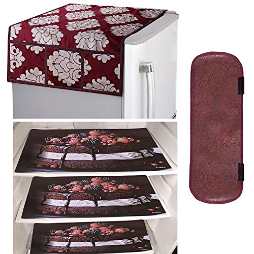Kuber Industries PVC 3 Pieces Fridge Mats, 1 Piece Handle Cover and 1 Piece Fridge Top Cover (Maroon)-Ctktc14567