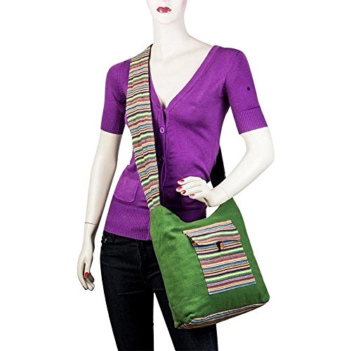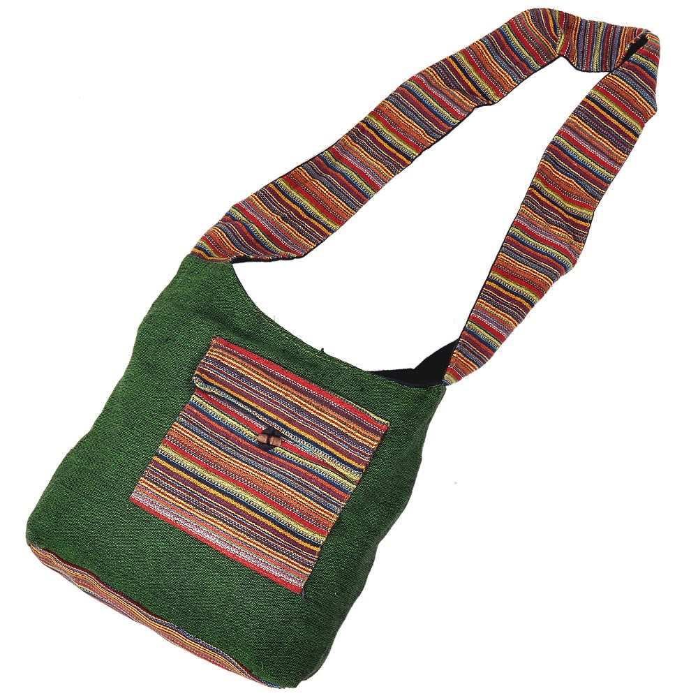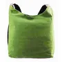 This sober yet stylish bag in Green colour is a must buy this summer season. This designer shoulder bag is made with plain Green colour jute cloth and has a multicolour lining pocket at the front of the bag. The appreance of this pretty bag is traditional yet fashionable. The bag is finished with matching shoulder sling for characteristic charm.