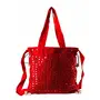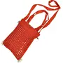 This trendy red shoulder bag presents a good example of traditional craftsmanship of Rajasthan. This ethnic bag is enriched with handmade embroidery by women working in Barmer district of Rajasthan. The trendy hand embroidered bag is enhanced with round mirrors on the front. The embroidered work in matching colour is remarkable handwork of our artisans. It has a red shoulder sling for a perfect finish. This fashionable cotton bag is embellished with pretty mirror work.