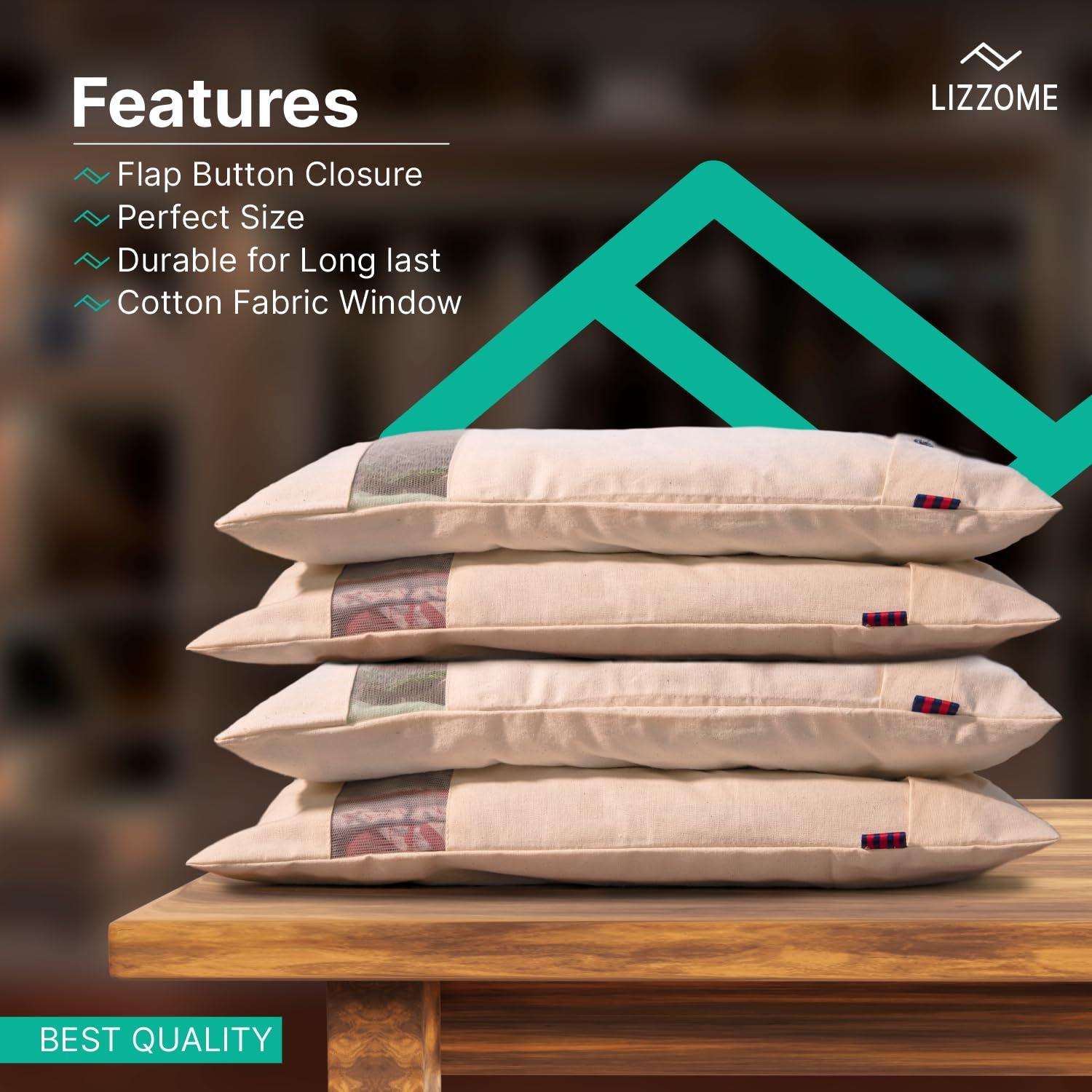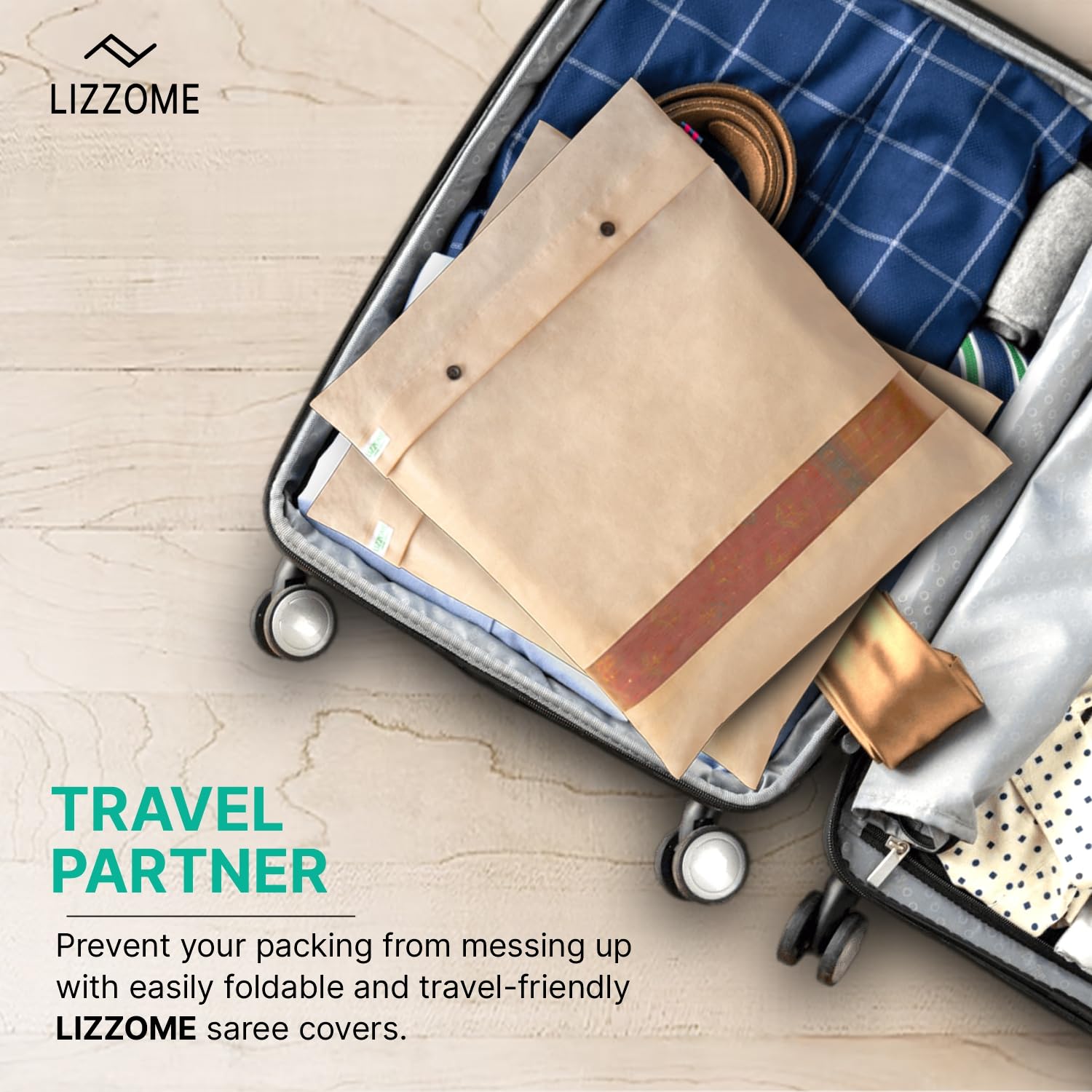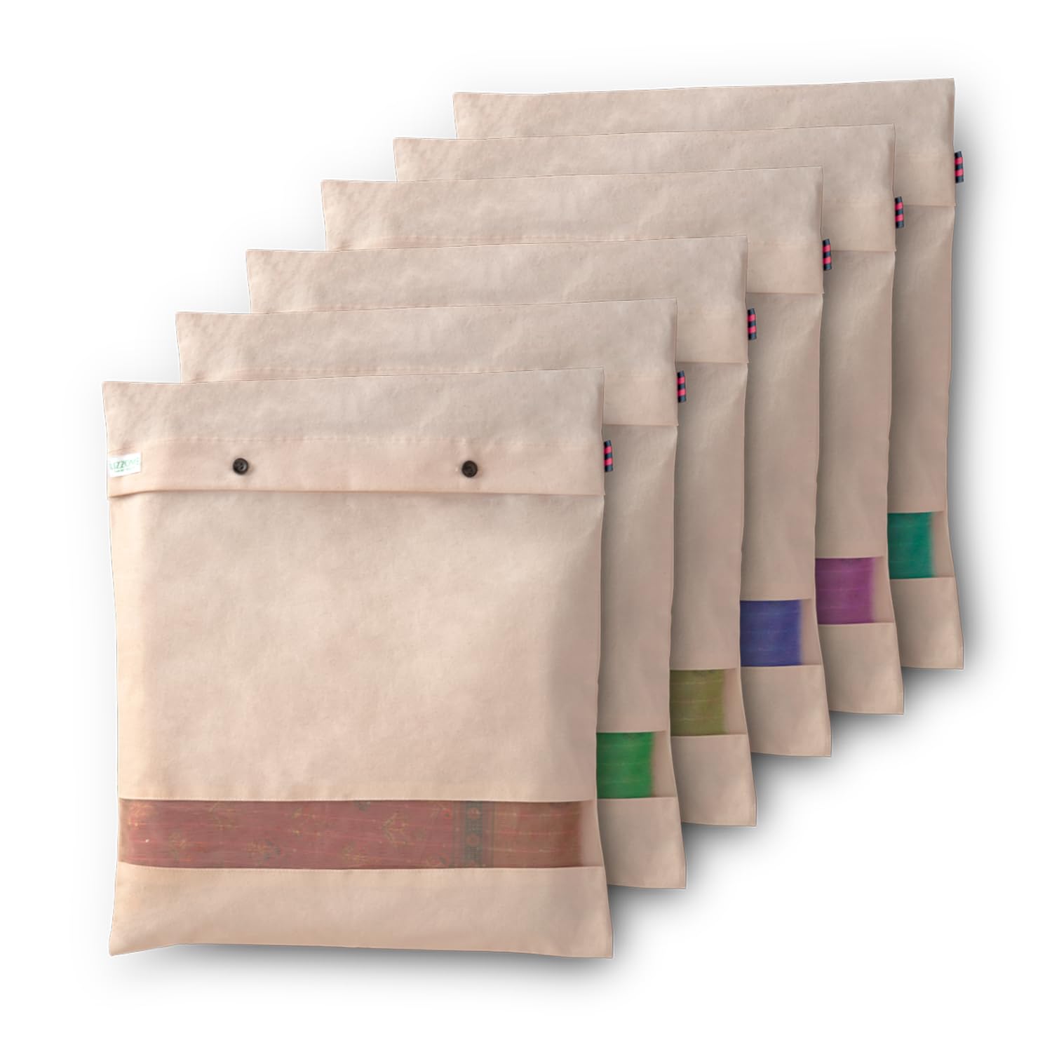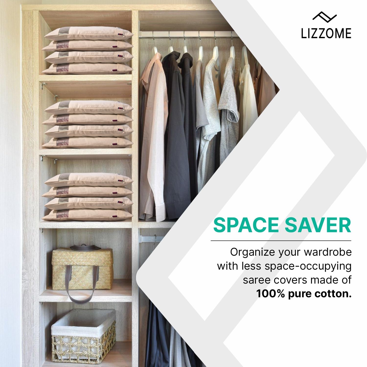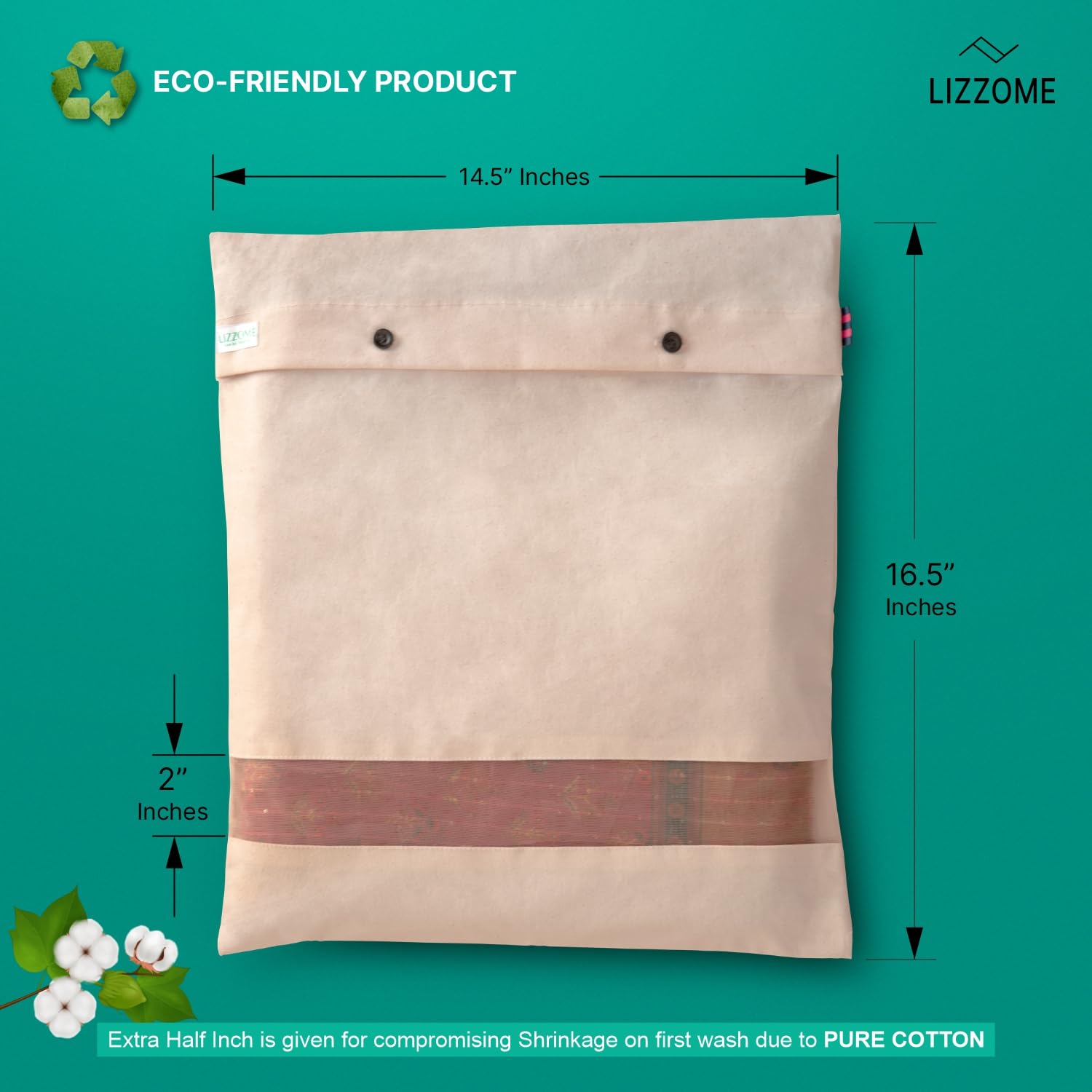 HomeFashionBagsLIZZOME Cotton Saree Covers & Bags For Storage Big Size Button Clouser Clothes Wardrobe Organizer Set Of 6 (16 X 14 Inches) Eco-Friendly Reusable Or With Mesh Windows Off White)