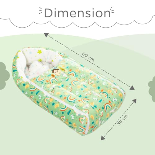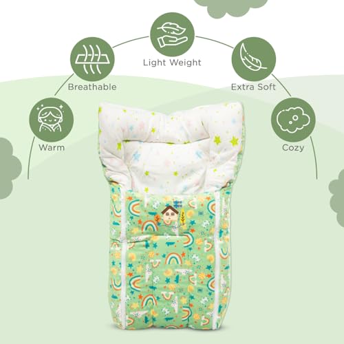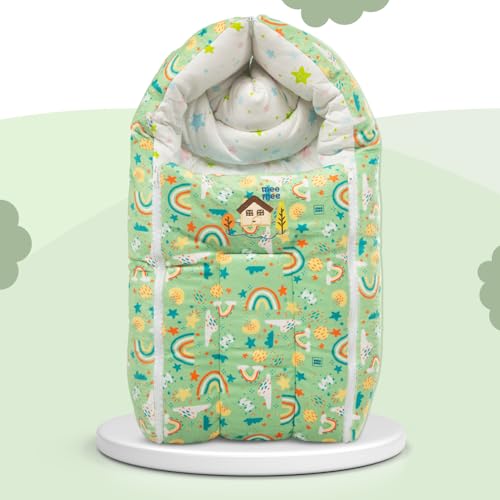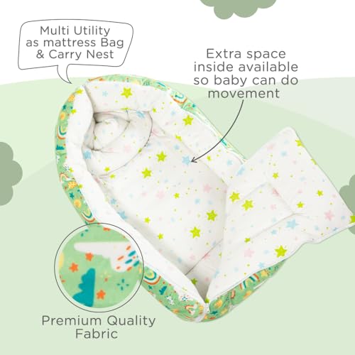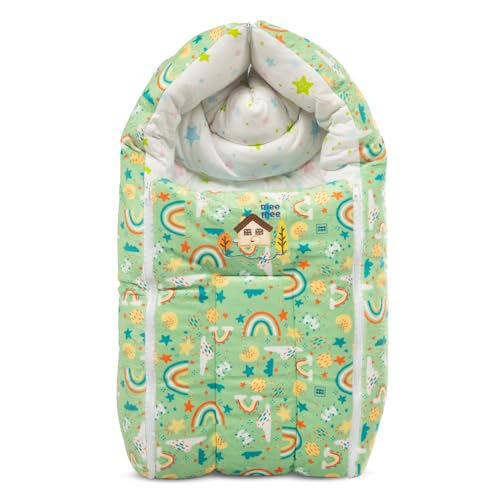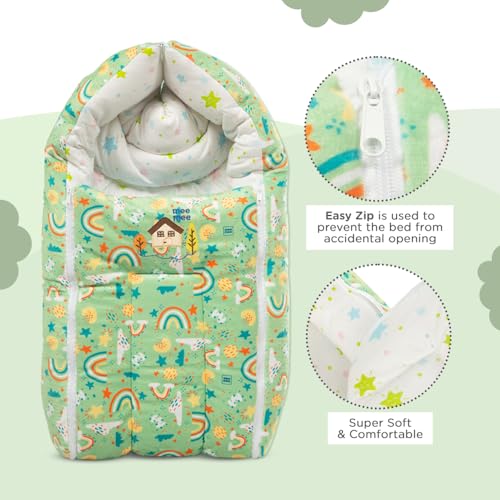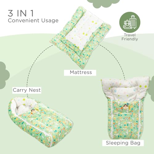 Mee Mee 3 in 1 Baby Bed, Sleeping Bag & Carry Nest, House Print, Shearing Finish & Cotton Soft from Inside, Machine Washable & Portable Bassinet, 0M+, Green