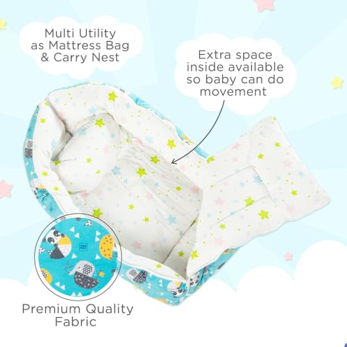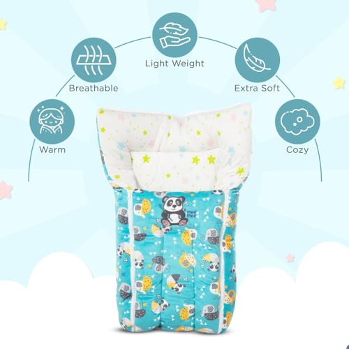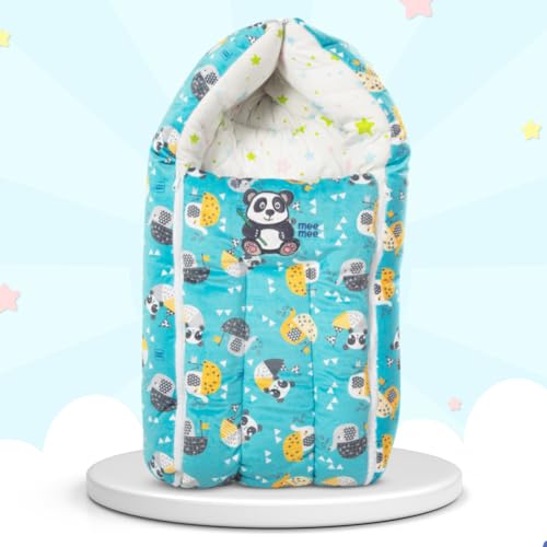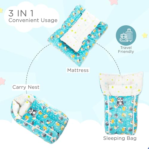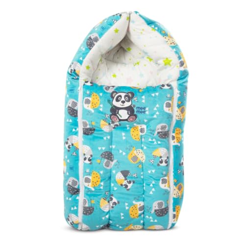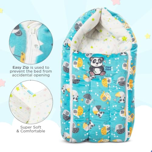 HomeFashionBagsMee Mee 3 in 1 Baby Bed, Sleeping Bag & Carry Nest, Panda Print, Shearing Finish & Cotton Soft from Inside, Machine Washable & Portable Bassinet, 0M+, Green