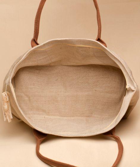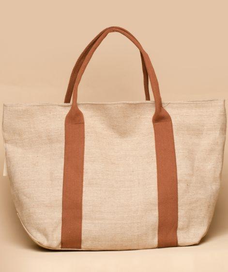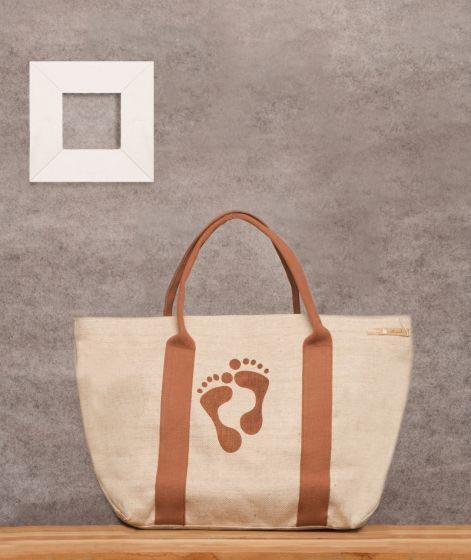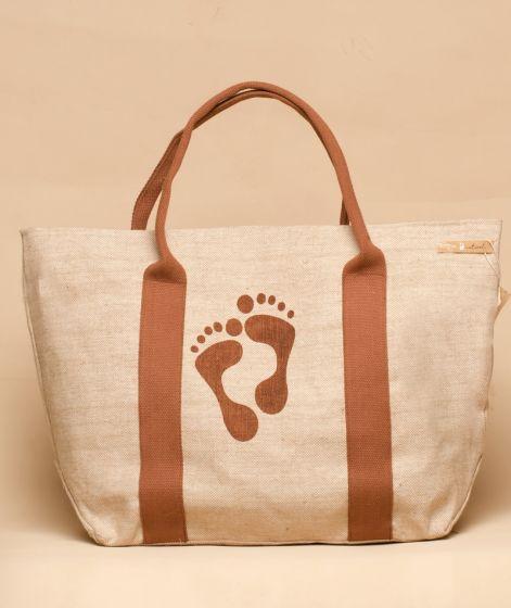 Showcasing an artistic footprint and a contrast handle, this jute bag is as sturdy as it's stylish.It can easily contain 12-15 clothing items and has a zipper to close the bag.Contribute to the wellbeing of the planet by using this bag instead of plastic bags.
