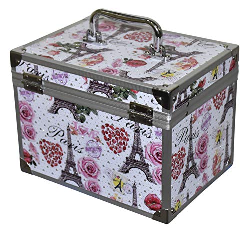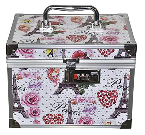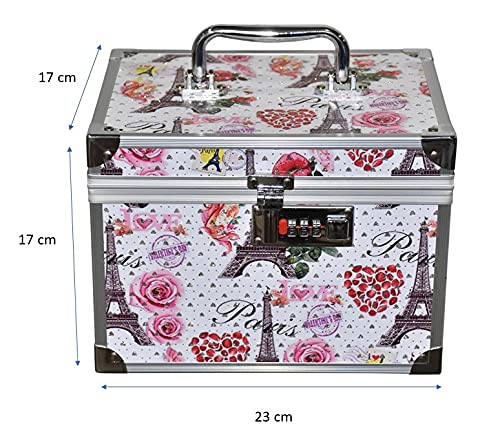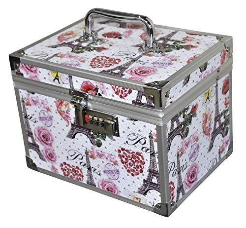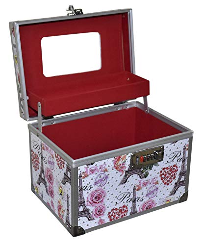Pride large aluminium framed Jewellery vanity case with a faux leather effect covering and perfect for storing make up Jewellery bangles cosmetics and toiletries. It comes with robust design easy grip carry handle faux maroon suede interior for a luxury finish and a number lock to keep your items safe and secure. A stunning vanity case crafted beautifully for professionals and perfect for home use. This gorgeous cosmetics/Jewellery case is made from silver hinges which guarantees durability. The stylish handle also ensures easy transportation with its lightweight nature. The case comes with a number lock not only complementing the hinges but provides ultimate security for example when taking it away for the weekend you know your cosmetics will be safe and secure. A must have for sorting make up beauty products jewellery And More!! SIZE : 23*17*17 CMS