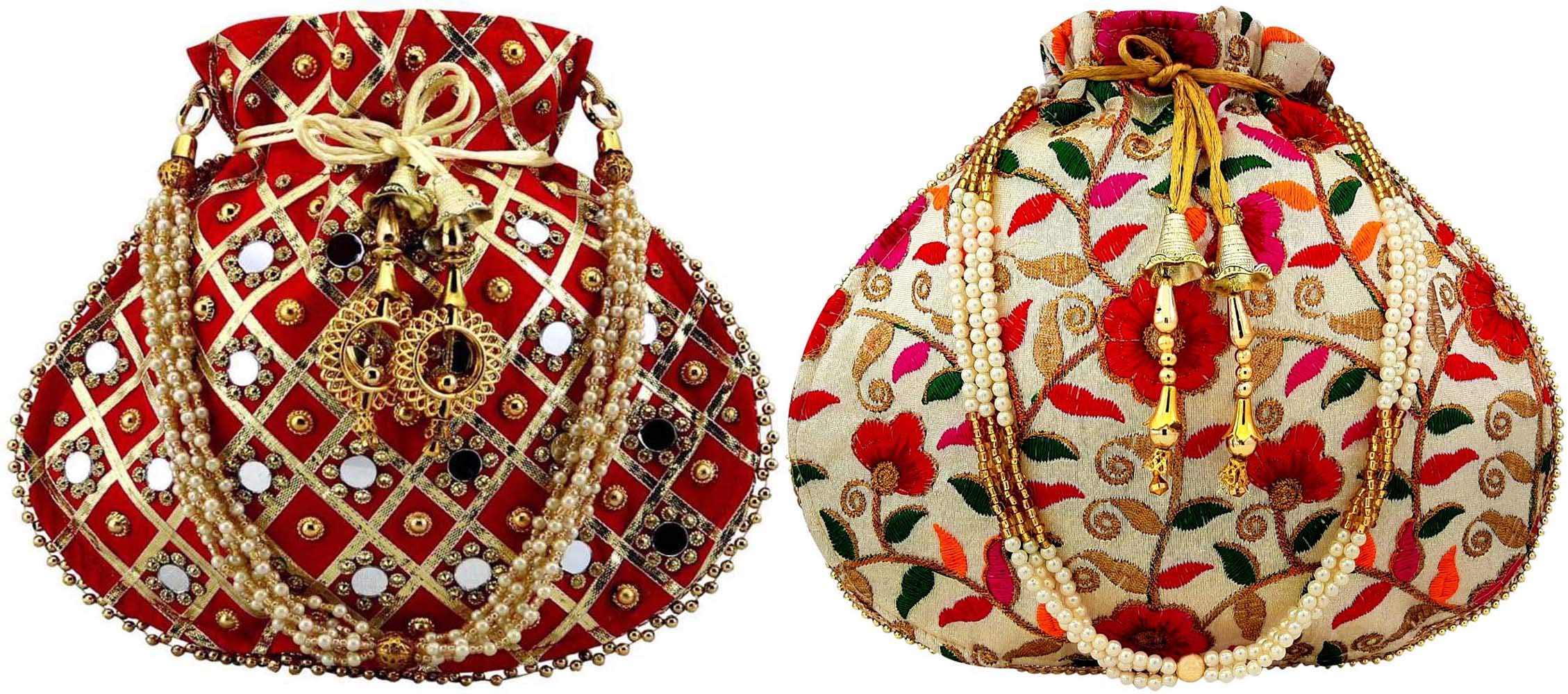 RAJASTHANI GOTA PATTI PRODUCTS Designer Rajasthani Style Silk Potli Velvet with Bridal Purse with Gota Patti Pottly Purse Women handbag Handicrafts Handmade Decorative Pure Silk Jaipuri Resham Potlis