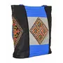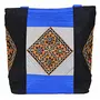 Raw Silk Tri Patch Bag - Aahir Work Embroidery Work TOTE BAG EK-TOT-0002 Blue-Black