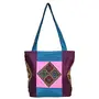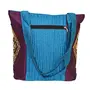Raw Silk Tri Patch Bag - Aahir Work Embroidery Work TOTE BAG EK-TOT-0002 Purple - Blue