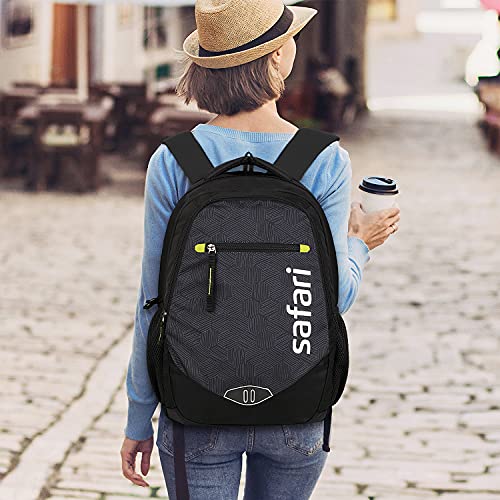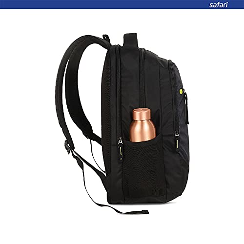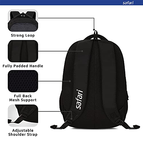 Safari Tribe is a 35 Litres 3 compartment laptop backpack perfect for daily usage. It has a dedicated tech safe laptop sleeve that can hold upto 17 inch laptop or any smaller ones easily. The laptop sleeve is also fully padded from the bottom protecting your device from any shock or damage. This backpack is especially designed for todays fast paced world where everything should be compact and lightweight. This backpack is perfect for everyday usage such as office college school tuitions or short holiday trips. The front pocket is designed to keep your essentials organized and side mesh pockets are perfect for storing your water bottle and umberella. Made of high grade water resistant polyester fabric this backpack will last you several trips.