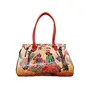 Handcrafted from Genuine Leather a Beautiful Ethnic Art of West Bengal. Design on Both Sides Double Shoulder Tote Handle One Main Zipper compartment One Zipper pocket in Back and Three Compartments inside Two zipper and One open cell phone compartment. Closes fully with zip. This purse is a classic example of age old Shantiniketan craft which was introduced in West Bengal India during the 1940s. The Shantiniketan style evolved as a result of the Art Movement and these products have now become world famous for their applique batik and embossed craft work. The process of burnishing the leather gives it an elegant sheen and brings out the colors. The major embossing craft is done by hand and is an intricate process. After the final leather made it is then stitched into the desired product coated with a lacquer finish for making the product shiny and long lasting. We are happy for your interest SHANTINIKETAN EMBOSSED LEATHER PRODUCTS and artist of Shantinikan thanks to you.
