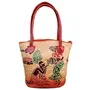 SHANTINIKETAN EMBOSSED LEATHER PRODUCTS Women's Leather Block Print Shantiniketan Handbag (ALH_04 Orange)