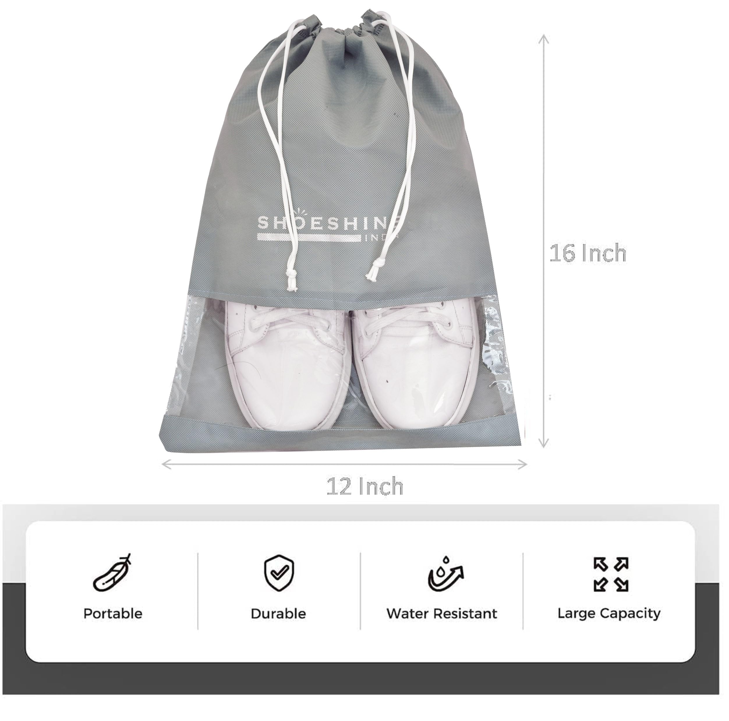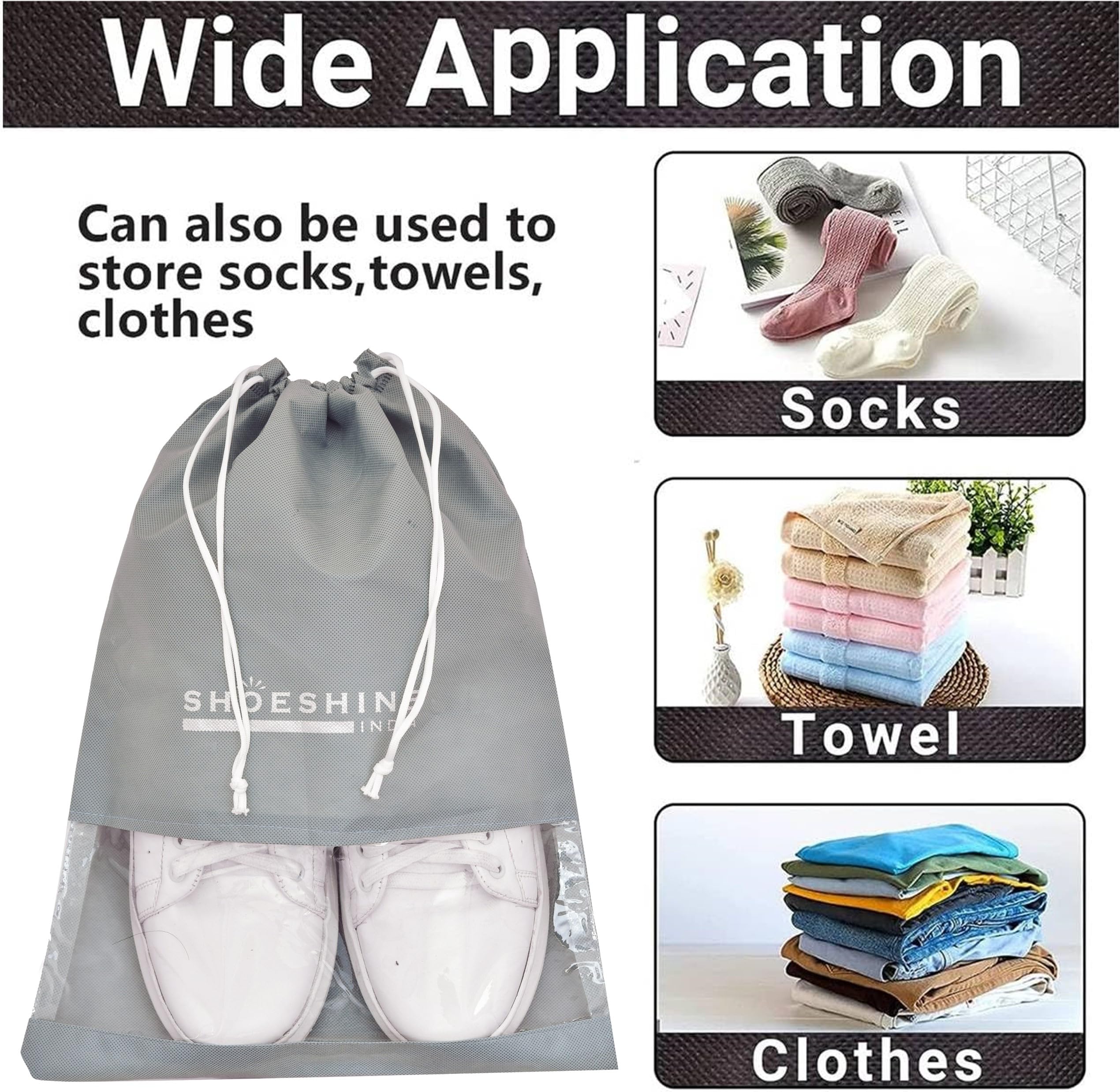 Shoeshine shoe bag are perfect for storage shoes for men and women such travel essentials are must have travel accessories for everyone. Shoeshine shoe bags pouches are dust proof and water resistant. These shoe cover are perfect for travel and home storage. Nonwoven shoe bag for travel will always be perfect choice to organize save space. Shoes bag available in many colors and quantity to choose from. Available Set of shoe pouch are Pack of 6 10 12 18 & 24.