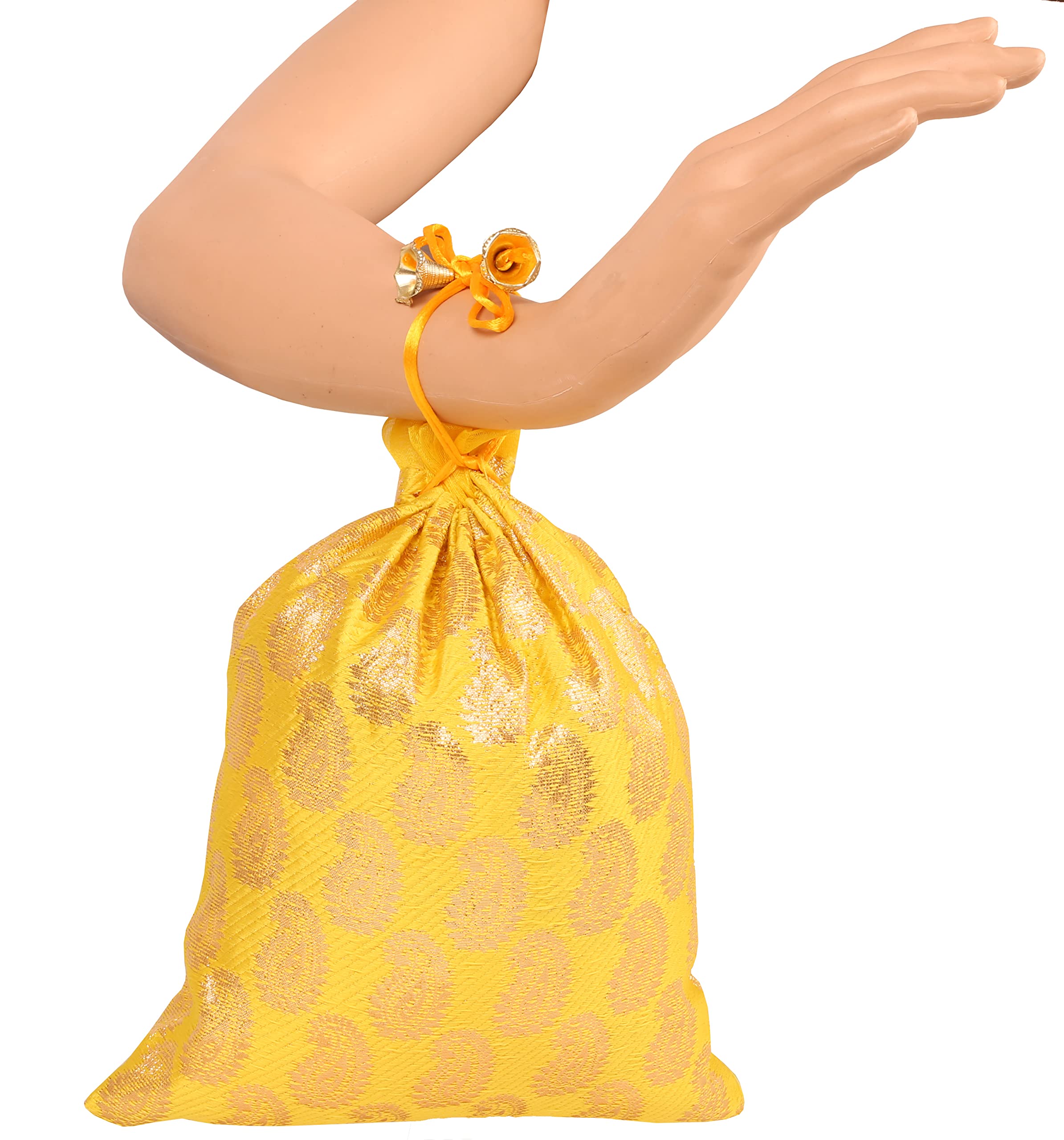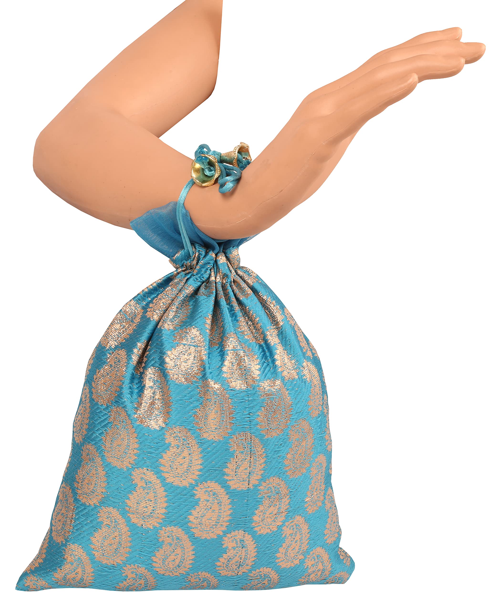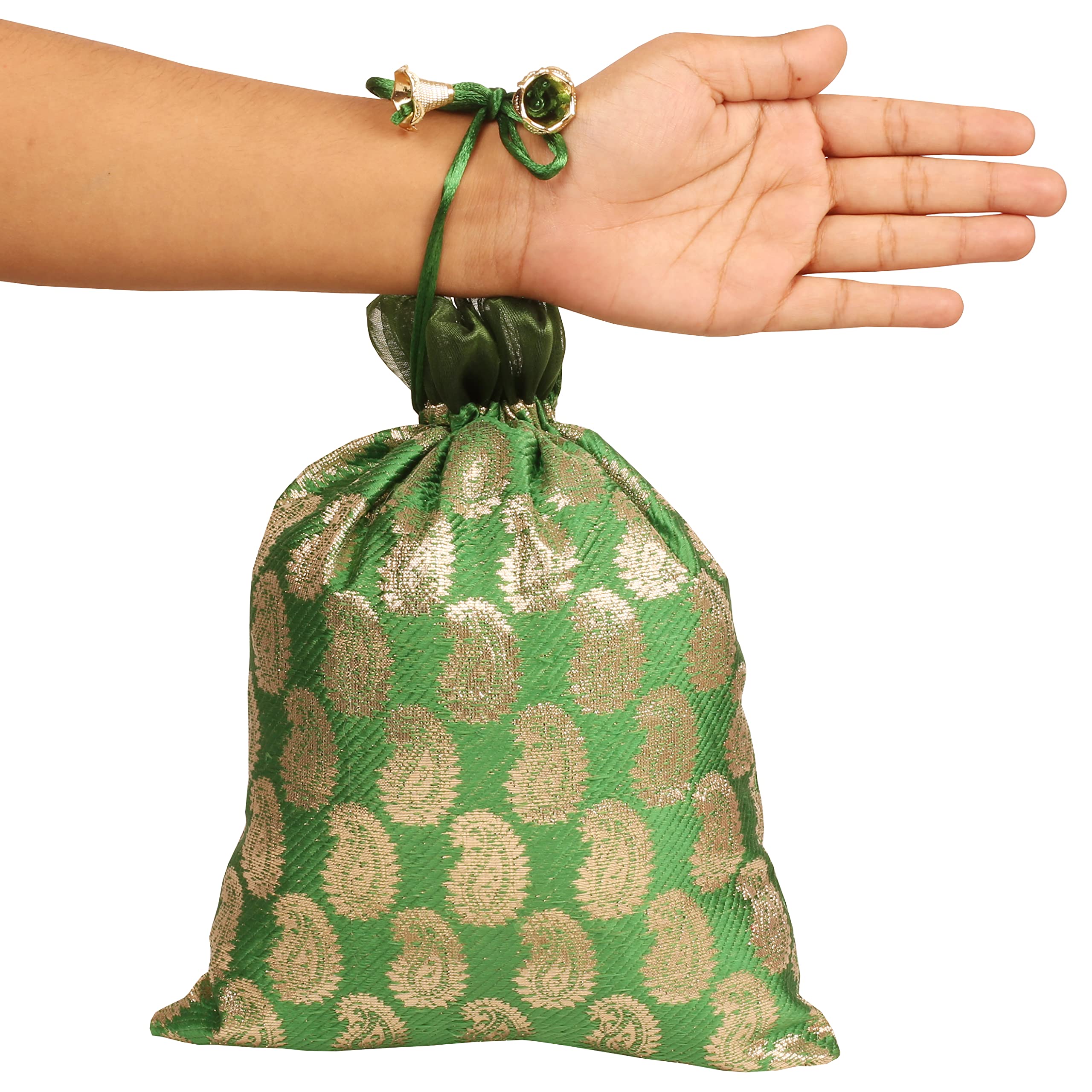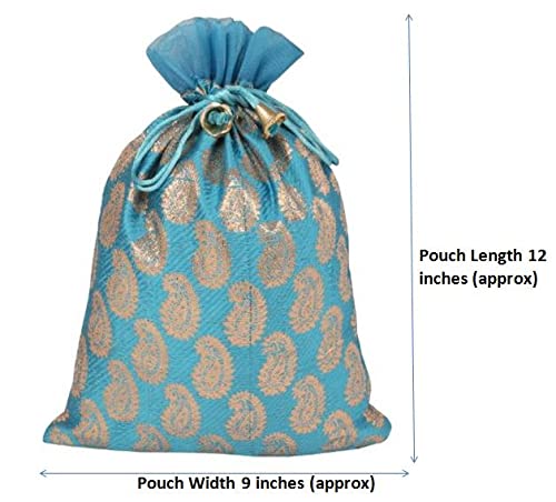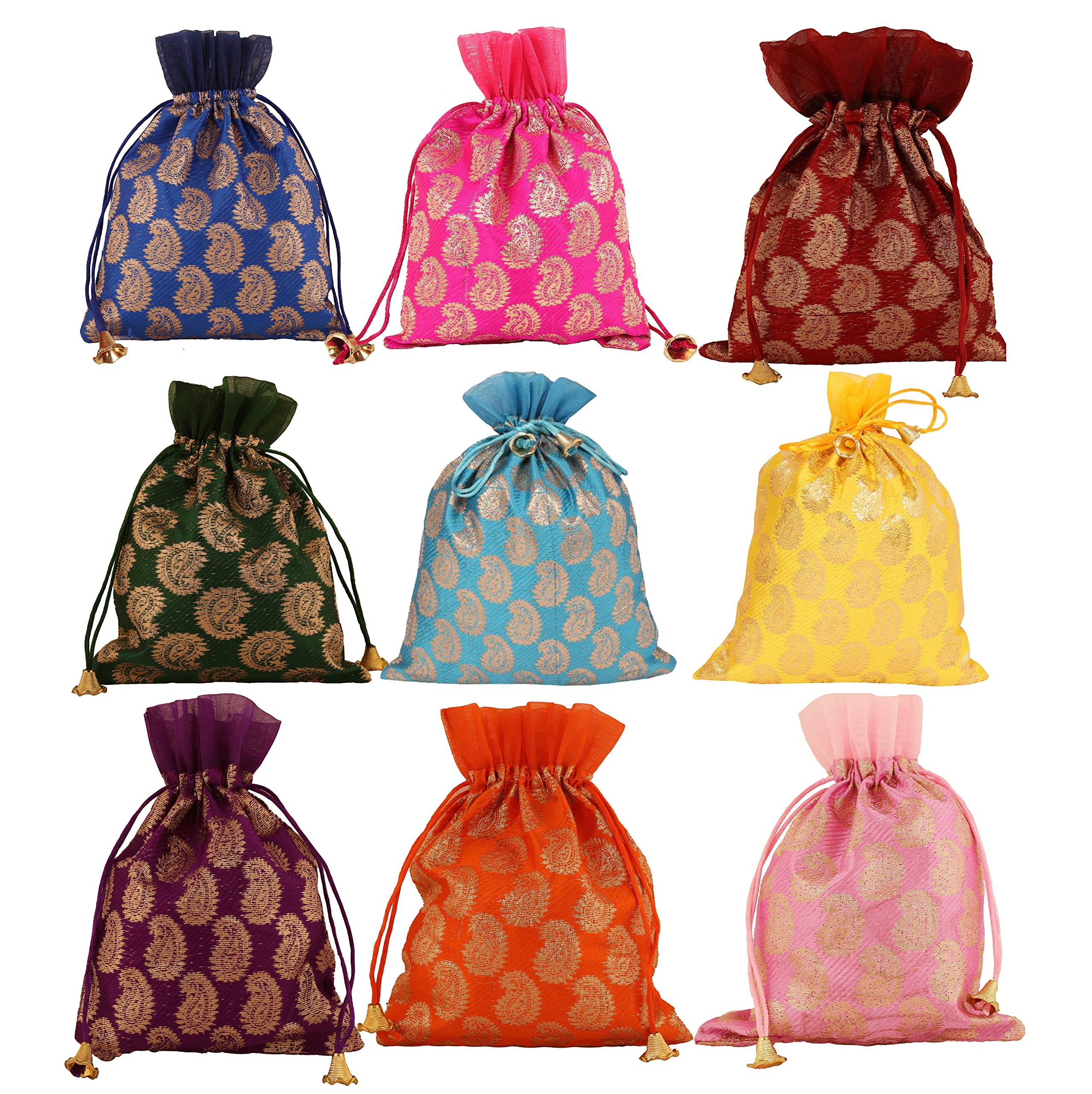 Touchstone New Gorgeous Indian Traditional Paisley Brocade Large Drawstring Large Bags Pouches Potli For Gift Wedding Jewelry Packaging Bridal Party Favors Colors Set Of 9 For Women.
