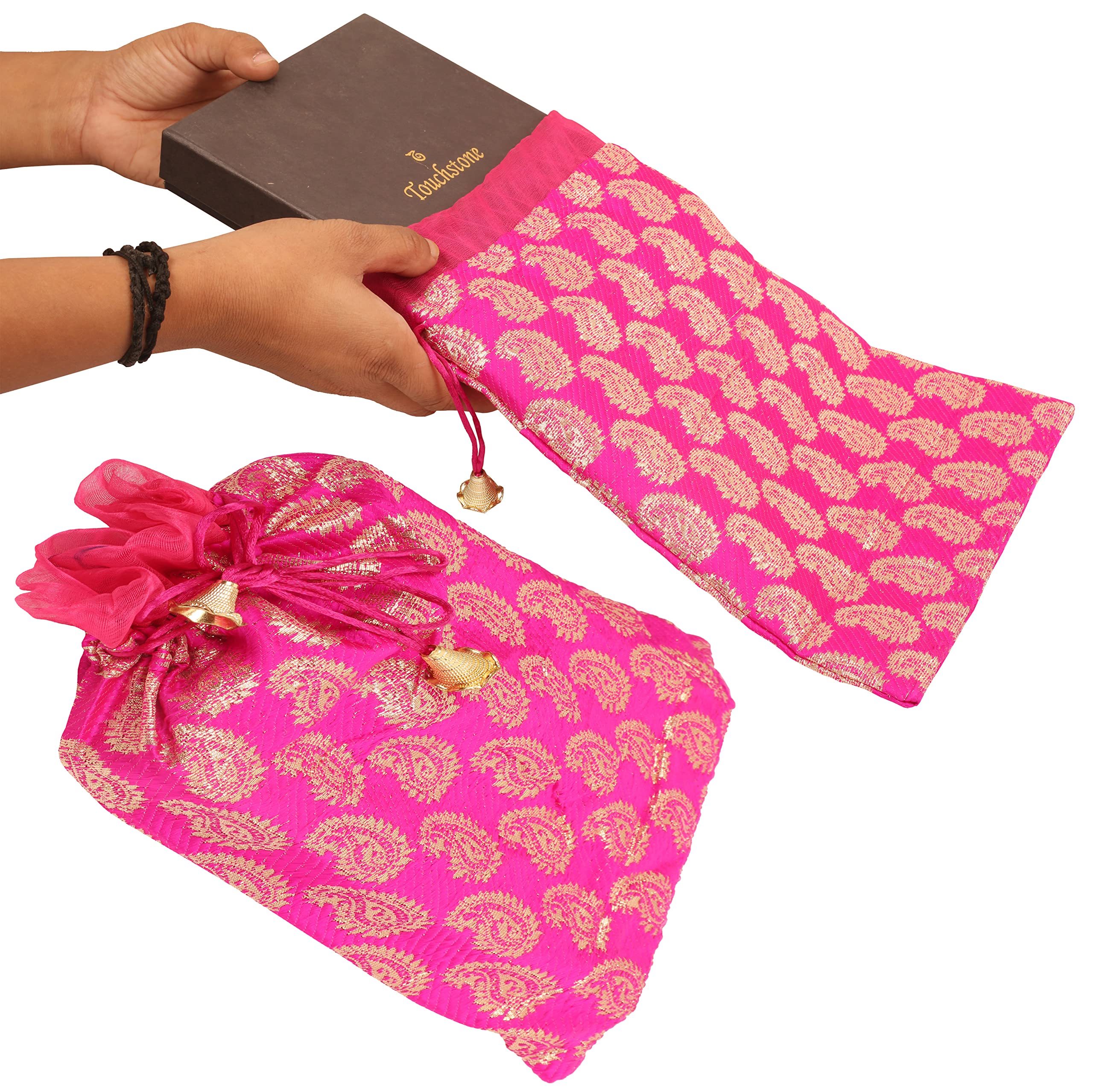 HomeFashionBagsTouchstone New Gorgeous Indian Traditional Paisley Brocade Large Drawstring Large Bags Pouches Potli For Gift Wedding Jewelry Packaging Bridal Party Favors Colors Set Of 9 For Women.
